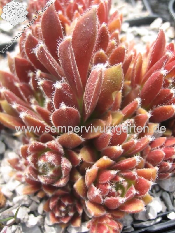 Ein wüchsiger, größerer Spinnwebhauswurz, welcher im Frühjahr leuchtend rote Farben zeigt.