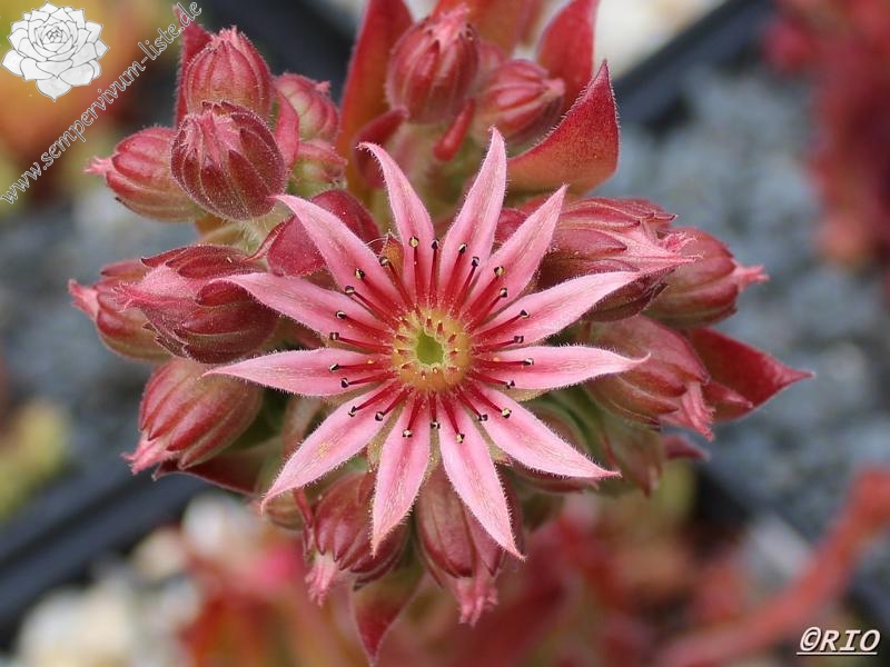 Rosettenmitte olivgrün , nach außen purpurbraunrot, Blattränder bewimpert, dadurch silbrig wirkend
