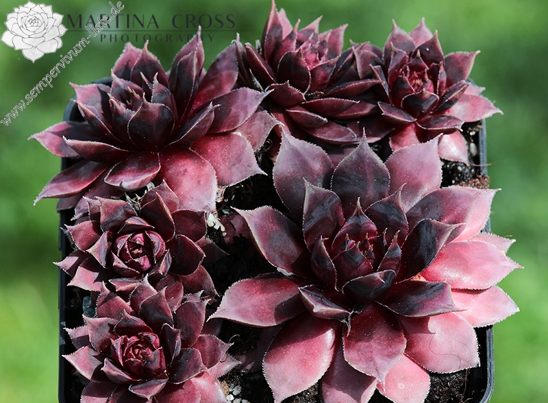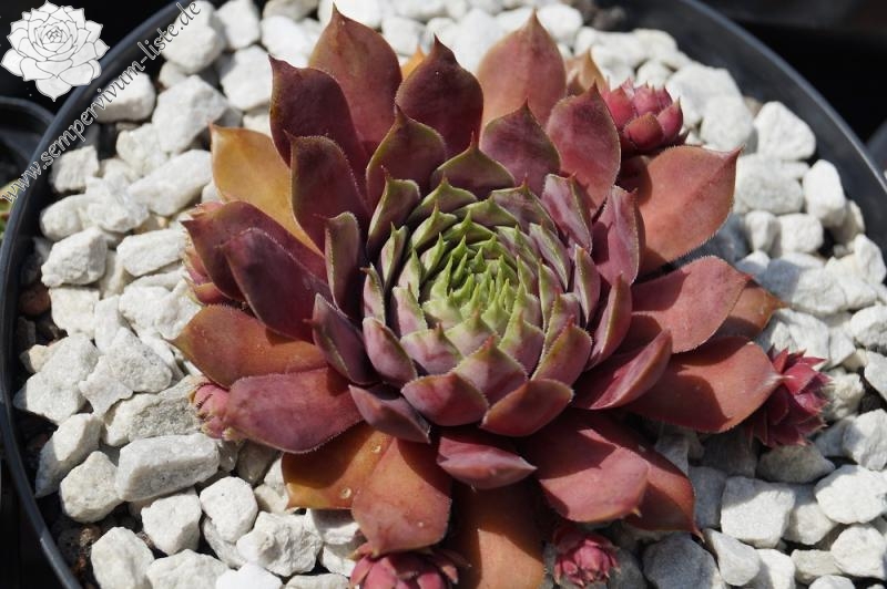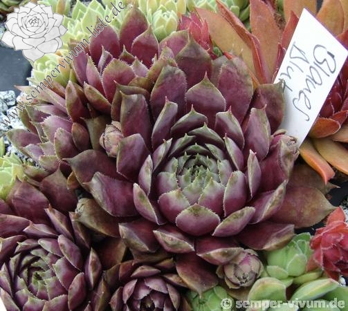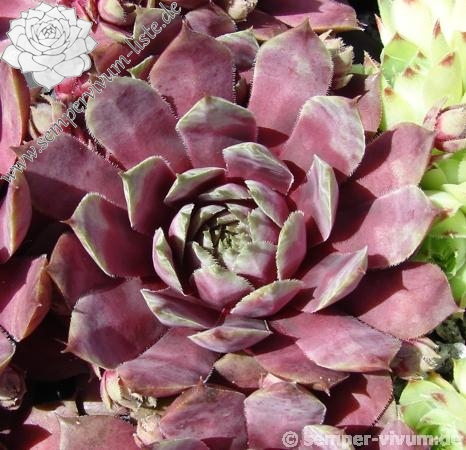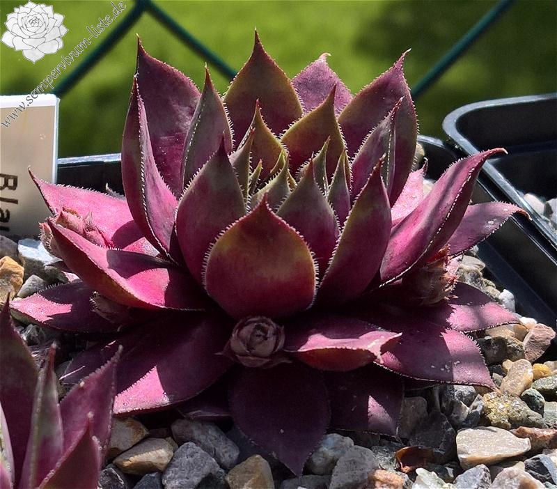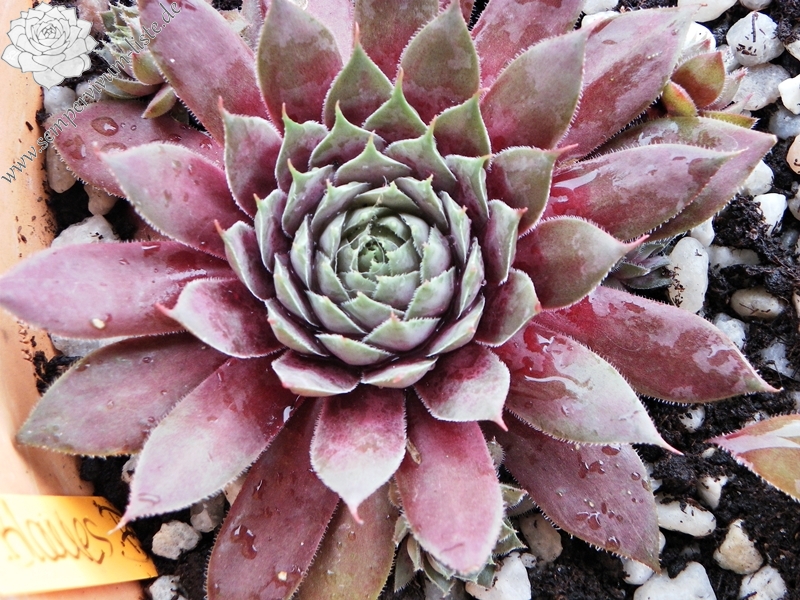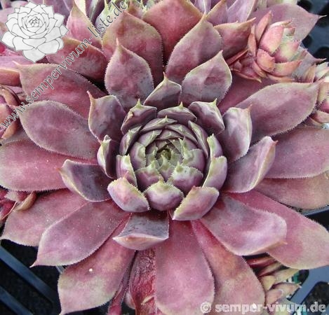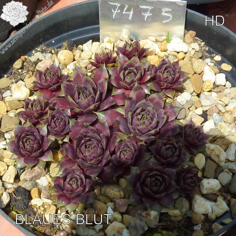 Dieser Sämling von 'Innocentia' fasziniert uns schon seit einigen Jahren und wir freuen uns sehr, ihn mit den Neuheiten von 2013 anbieten zu können. Freunde waren stets begeistert von Form und Farbe. Die auffallend dunkle Tönung in den ersten Maitagen wurde von der Mutter vererbt. Nach und nach präsentiert die Sämlingsauslese verschiedene, violette Schattierungen. Den Höhepunkt der Färbung zeigen die relativ großen Rosetten Mitte Juni. Dann wirken die Blätter vom Zentrum her wie mit einer blauvioletten Wachsschicht überzogen! Das Laub endet in einer längeren Blattspitze. Zum Herbstanfang verfärbt sich das Zentrum der Rosetten in jadegrünes Pastell. Sempervivum 'Blaues Blut ist ein Geschwistersämling von 'Picasso', eine unserer Neuheiten von 2012.