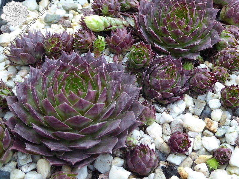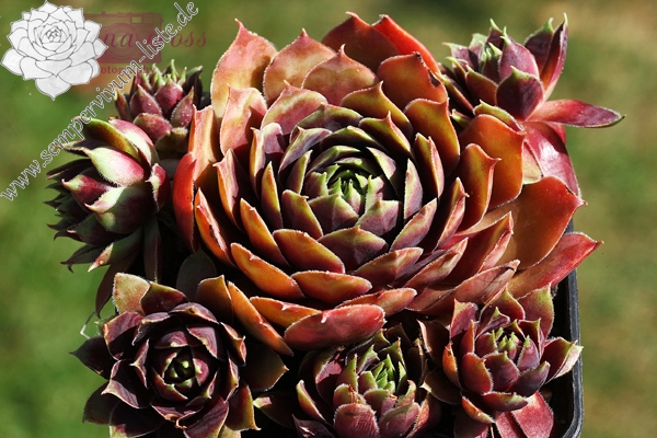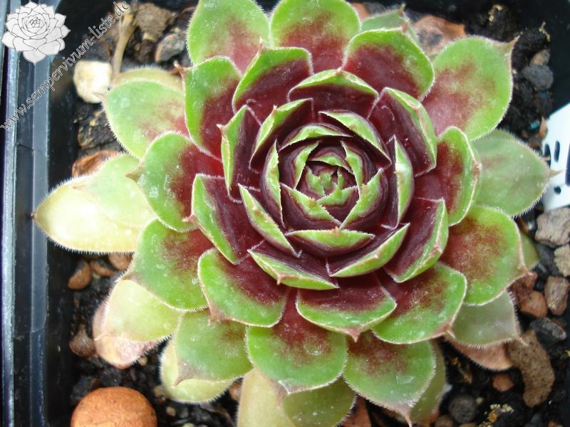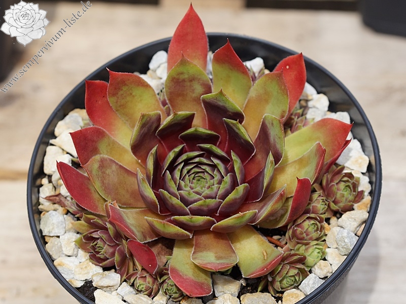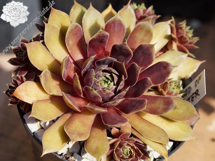 Die britische Sorte formt relativ große Rosetten in verschiedenen violetten Tönen, die zeitweise recht bunt wirken. Besonders im Herbst in edler Form mit kontrastreicher Färbung.