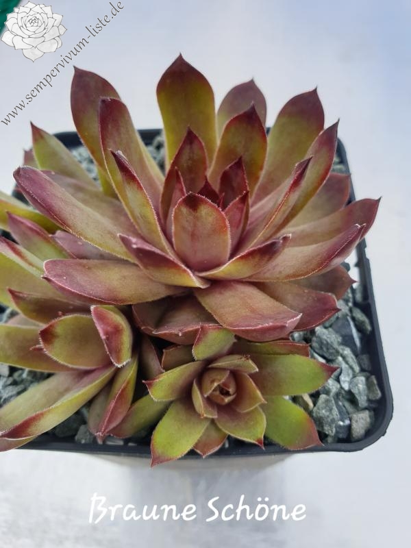 Sempervivum Braune Schöne ist eine kleinere Sorte, die stark sprosst und dichte Polster bildet. Die Farben passen gut zusammen!