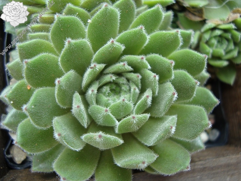 Diese auffallende Sorte hat mir sofort gefallen! Die samtigen Rosetten besitzen eine ungewöhnliche Färbung. Besonders schön sind die kleinen dunklen Blattspitzen