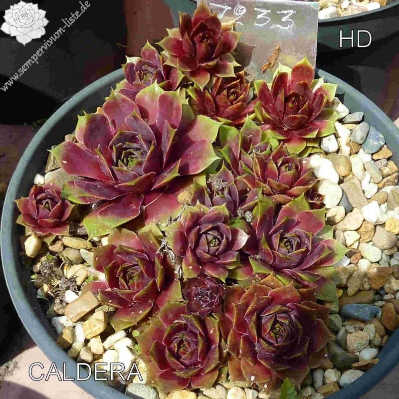 Die größte Hauswurz in meiner Sammlung: bis zu 18 cm große Rosetten mit breiten, fleischigen Blättern. Im Frühling herrlich rosapurpur mit breit gezeichneten graurosa Spitzen. Eine Caldera ist das spanische Wort für Kessel und steht für eine kesselförmige Struktur vulkanischen Ursprungs.