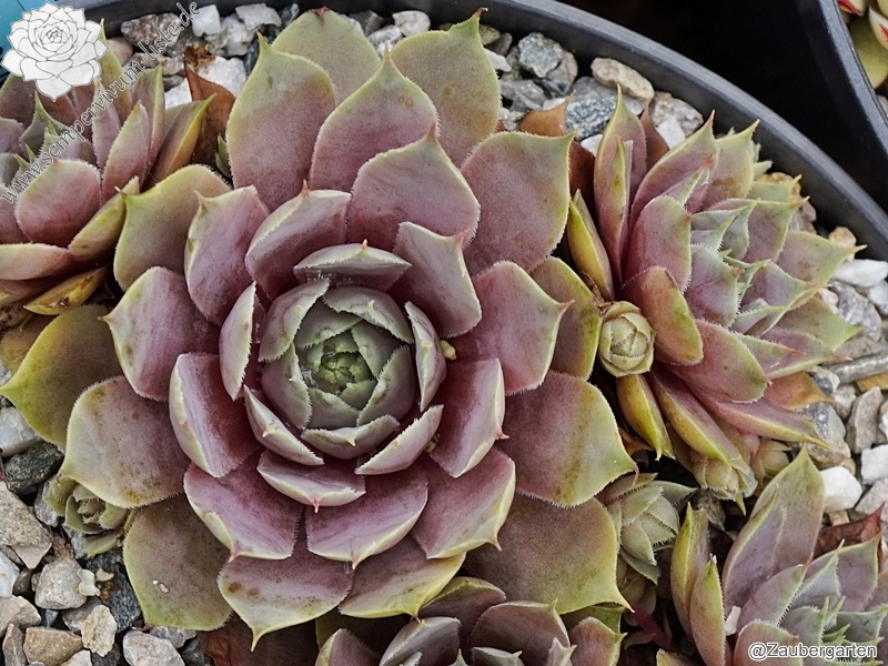 Sempervivum 'Capucino' ist eine sehr schöne Züchtung, die verschiedene kühle Farben zeigt. Bildet gute dichte Polster!