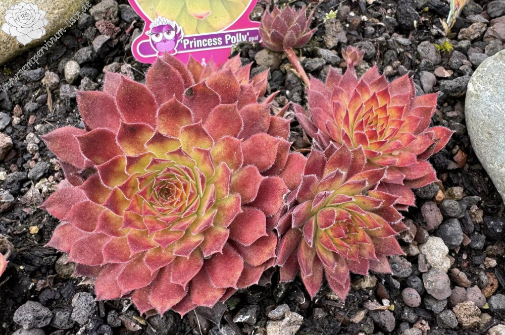 The Chick Charmlettes series of miniature Hen & Chicks are every bit as colorful, vigorous, and cold hardy as their larger flock members, just smaller! These little Chicks were selected to remain small and work great in tight places. The vivid yellow rosettes of Sempervivum Chick Charmlettes 'Princess Polly' show ruby-red centers or red leaf tips, depending on the season. PPAF