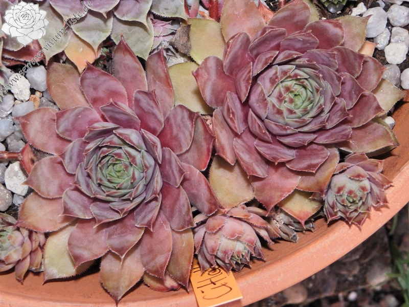 Ein größerer, robuster Hauswurz, welcher ganz edle Rosetten bildet und breite, sehr fest wirkende Blätter besitzt. Im Sommer färben sich die Rosetten heller und die Blattenden heben sich noch schöner von der Grundfärbung ab. Sehr zu empfehlen!