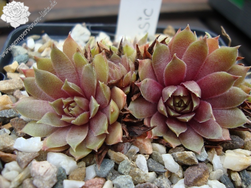 Schöne kleine Rosetten, die ganz dichte, hüglige Polster bilden! Die kühle Färbung wird durch die roten Blattspitzen schön abgerundet.