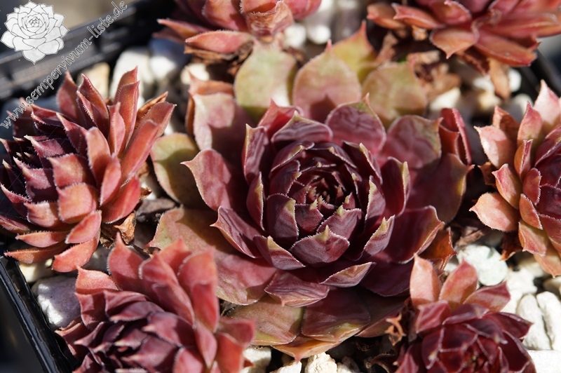 Es scheint als wären zwei Hybriden aus verschiedenen Ländern wieder einmal mit demselben Namen getauft. Wir haben fur Sie jedoch die schönere der beiden vermehrt: attraktive, mittelgroße Rosetten mit violetten Blättern mit graugetönten Blatträndern und -spitzen.