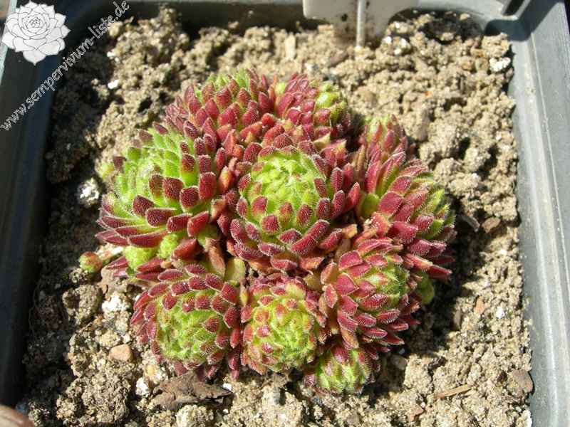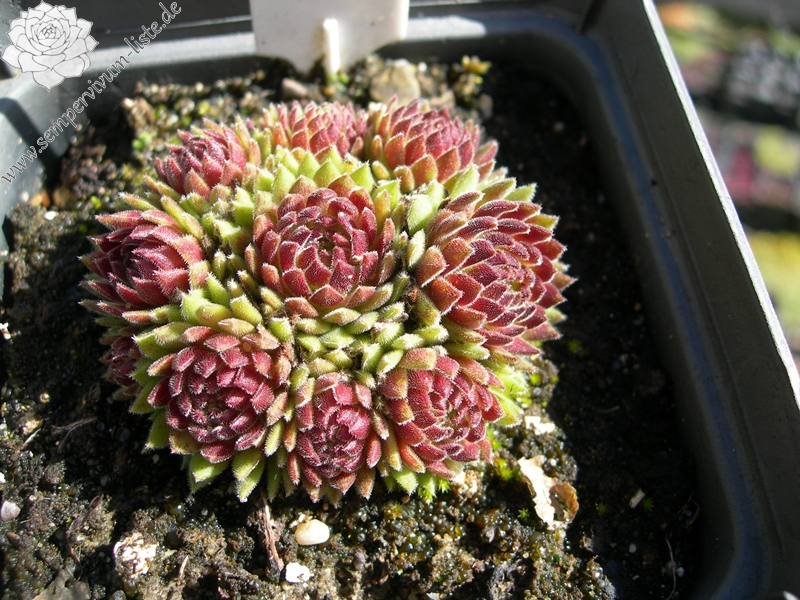 COCCINELLA (Biedronka) Sämling von 2021/23 (Erscheinungsjahr 2023) Mutter „Special Gift“. Winzige Rosetten wachsen dicht zusammen und bilden eine Art Panzer. Die Farbe ist variabel, im zeitigen Frühjahr ist die Mitte der Rosetten rot, dann umgekehrt ist die Mitte grün und die äußeren Blätter rot, im Sommer verblassen die Farben.