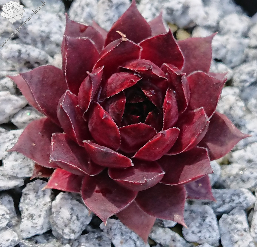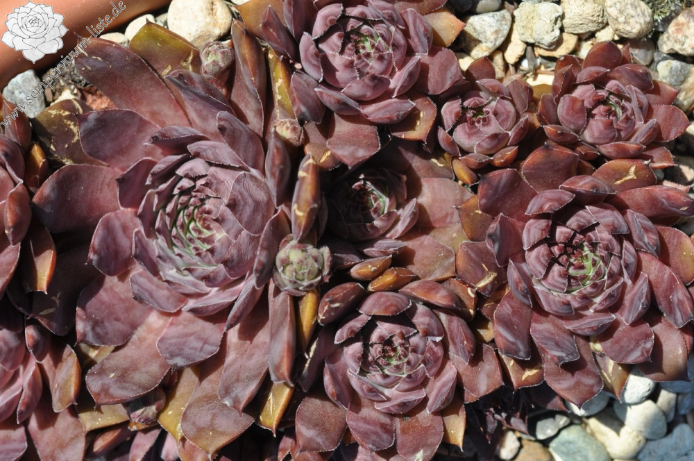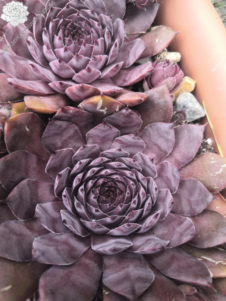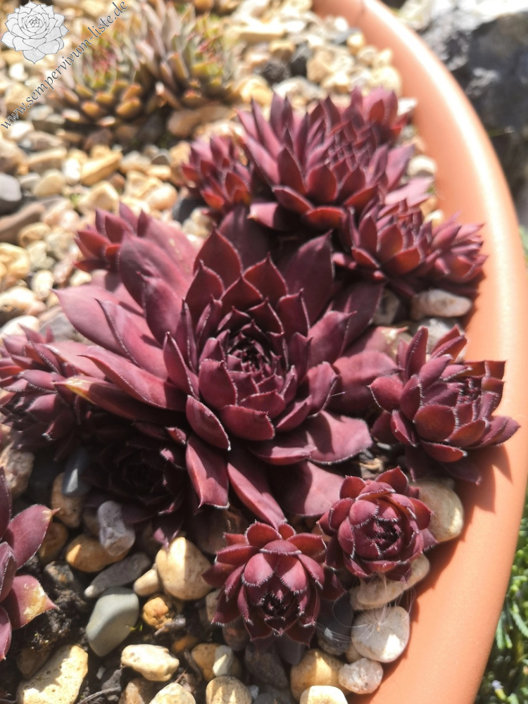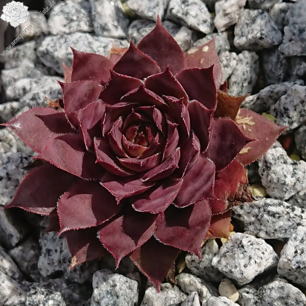 Die Rosetten sind mittelgroß und schwarzblau gefärbt, was auch bei heißem Wetter den ganzen Sommer über anhält.