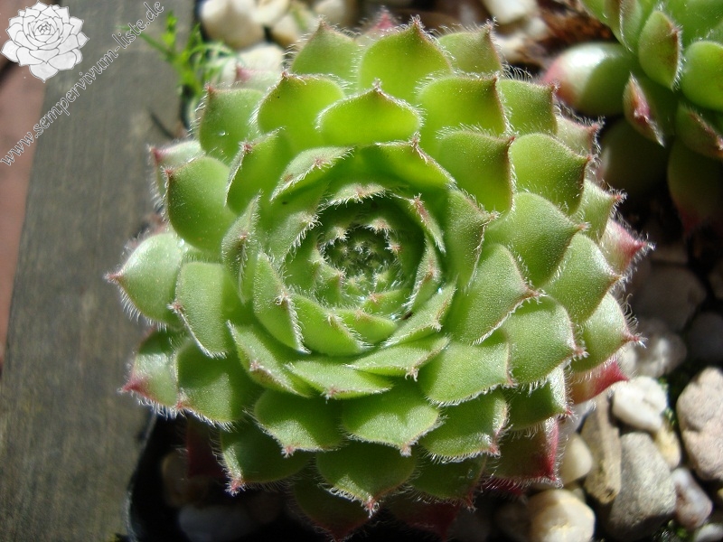 mittlere Größe, Rosetten schön rund, sanftes Grün, Rückseite rot, schöne Wimpern
