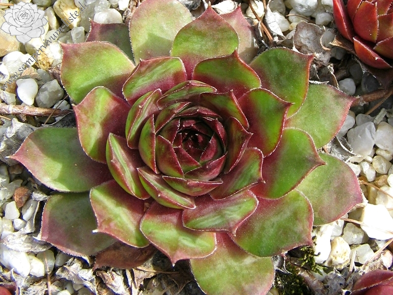 Eine deutsche Sorte mit relativ spitzen Blättern, die große Rosetten formen. Die schönste Färbung zeigt 'Cripello' im Juni: Gelblichgrün mit orangeroten Blattspitzen.