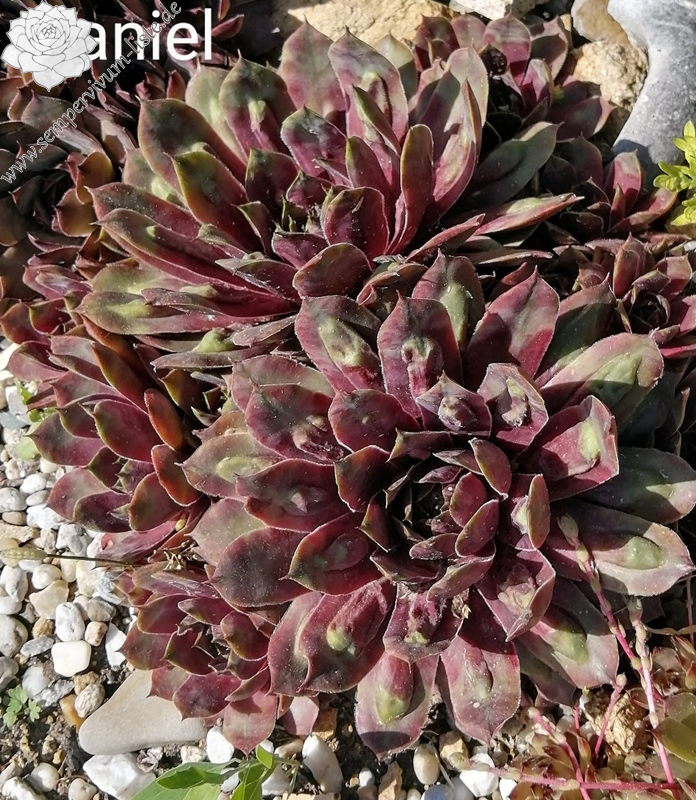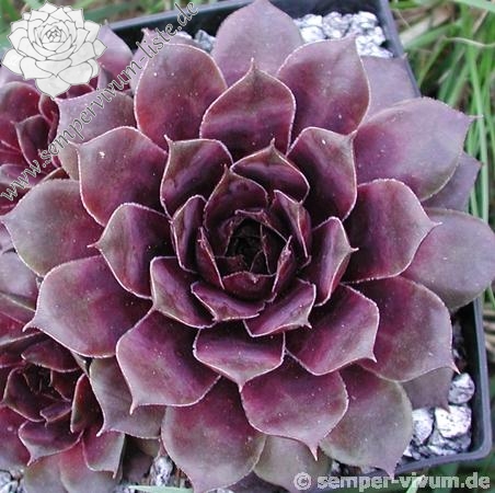 Ein attraktiver Sämling von 'Black Emerald': Im Frühling schwarzviolette Rosetten, deren Blattenden sich bis zum Sommer olivgrün verfärben. Ein toller Kontrast!