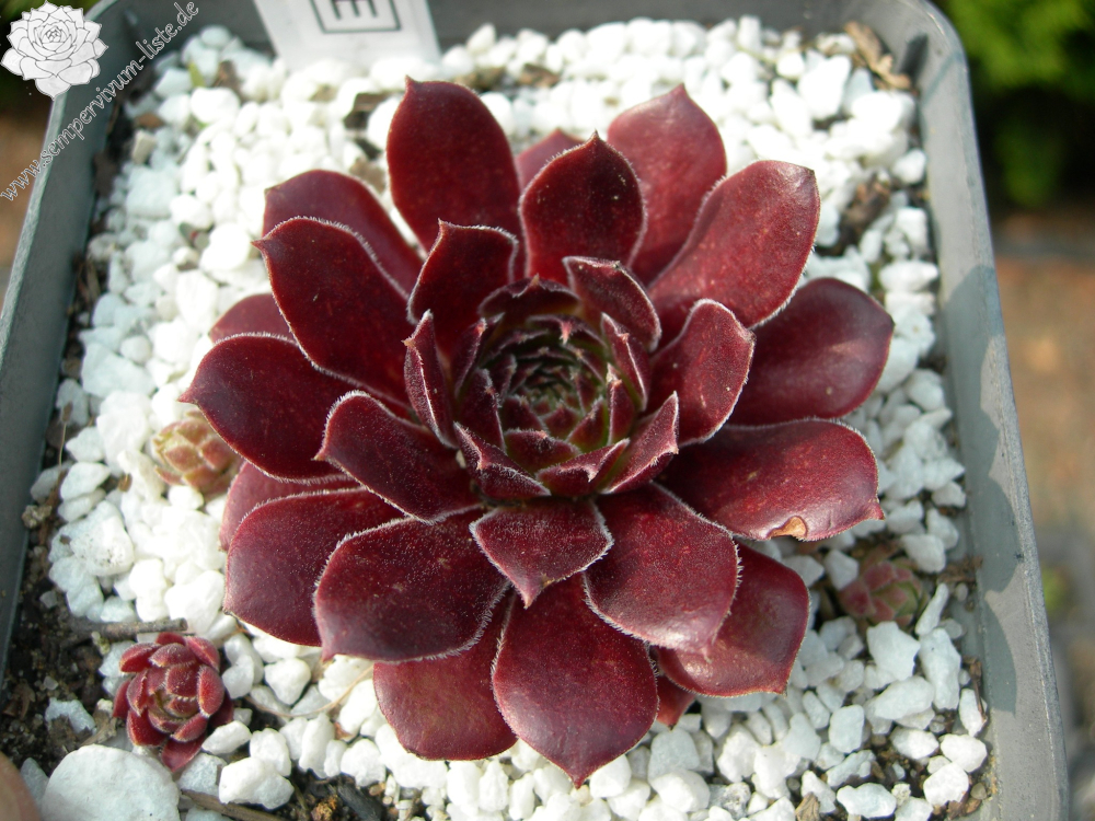 Von früh im Frühjahr sind die Rosetten fast schwarz oder dunkelbraun, im Sommer hellt sich die Farbe zu braun mit einem Hauch von Gold auf, feine Härchen, die nach der Mutter nur im Frühling sichtbar sind, im Sommer sehen die Blätter aus, als wären sie aus glänzender Haut gemacht. Ihre Farben behält sie fast die gesamte Saison über. Die Rosetten sind von mittlerer Größe, 6-7 cm, die Blätter flacher. Sie bringt ziemlich viele Nachkommen hervor.