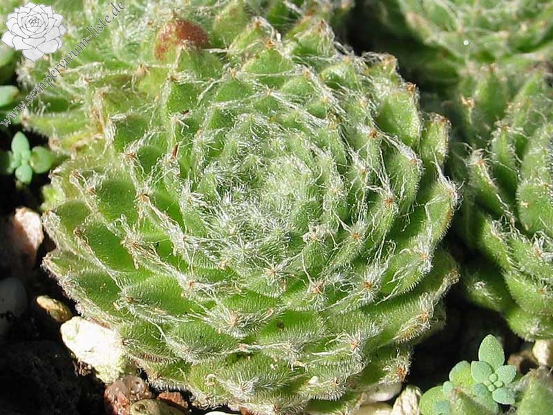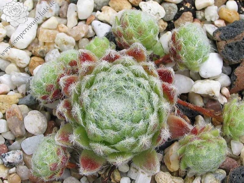 Ein absolutes Muß für jeden Sempervivumsammlung: Besonders attraktive, runde Rosetten, deren Zentrum sich deutlich nach innen wölbt. Die Blattenden besitzen auffallend weißen Haarbüschel wodurch die Pflanzen plüschig wirken - noch dazu sehr wüchisg!