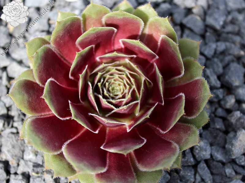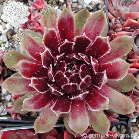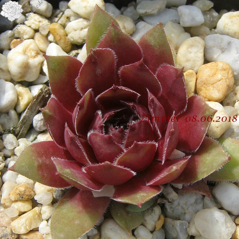 Diese faszinierende Schönheit stammt aus Belgien: Sternförmige Rosetten mit einer bezaubernden kirschroten Färbung. Dazu noch kontrastreiche, weiße Bewimperung an den Blatträndern.