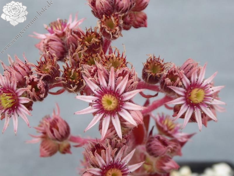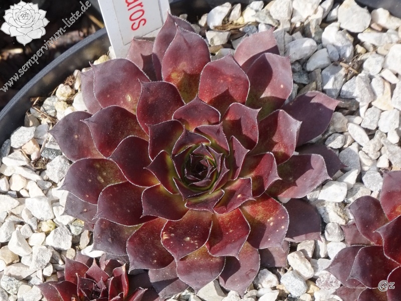 Sempervivum 'Esparos' ist eine mittelgroße Züchtung die gut sprosst. Die kräftigen, etwas bullig wirkenden Rosetten bilden dichte Polster. Die Blätter sind rötlich gefärbt und besitzen einen hellen Blattboden. Die Pflanzen haben eine ganz tolle Ausstrahlung