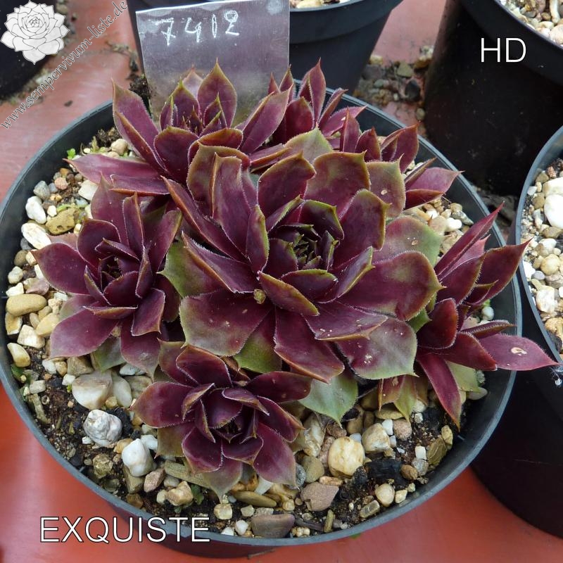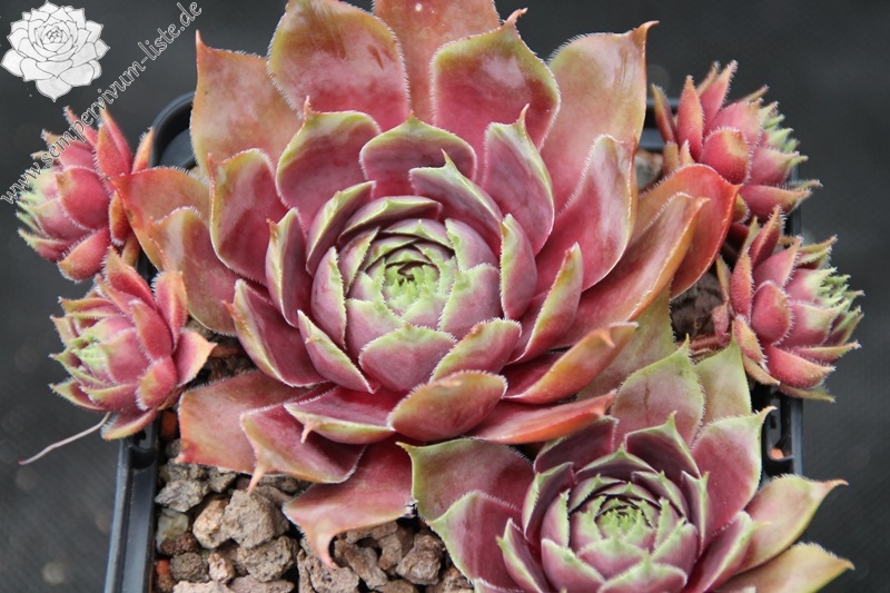 Dieser Kultivar stammt von einer Sempervivum-Sammlerin aus Oregon. Mittelgroße Rosetten mit hechtgrauen Rosetten und purpurfarbenem Zentrum.