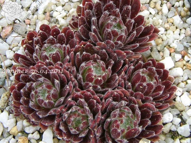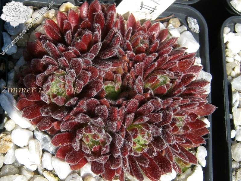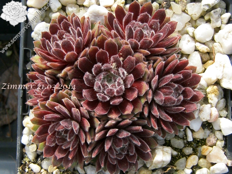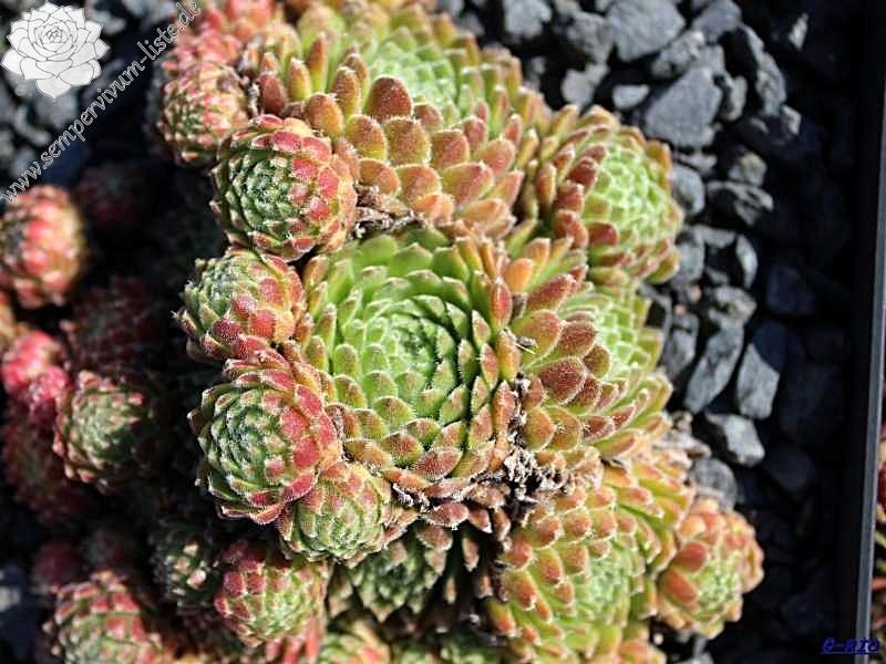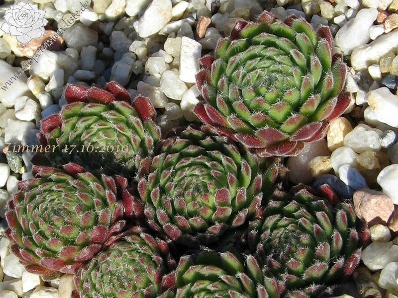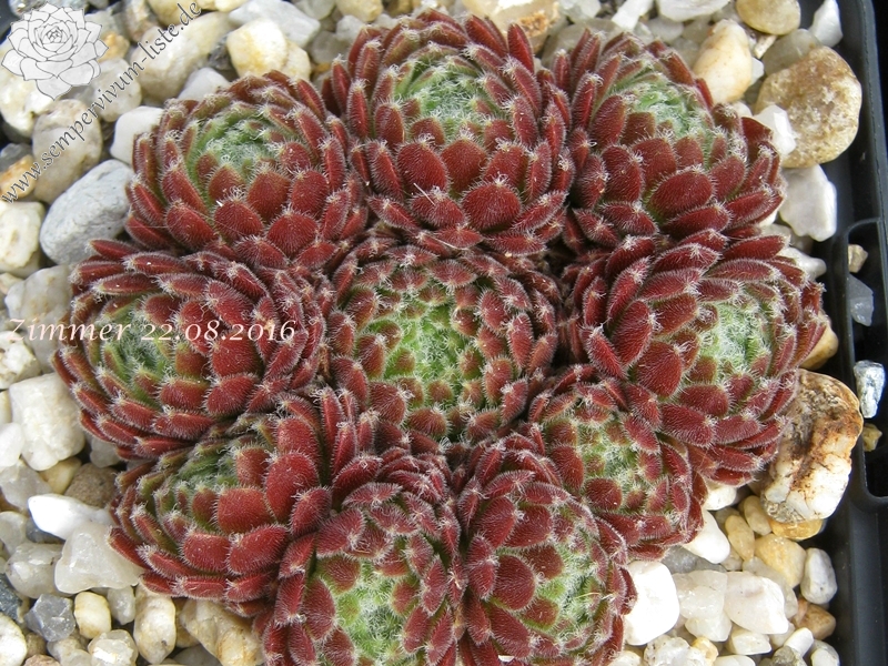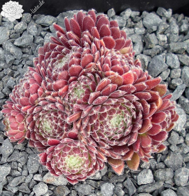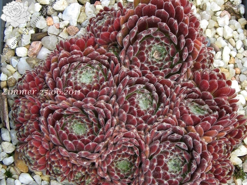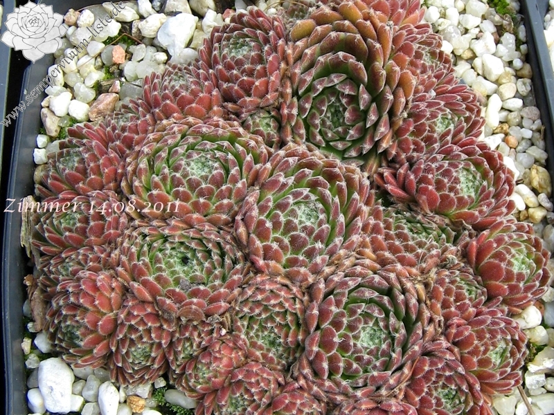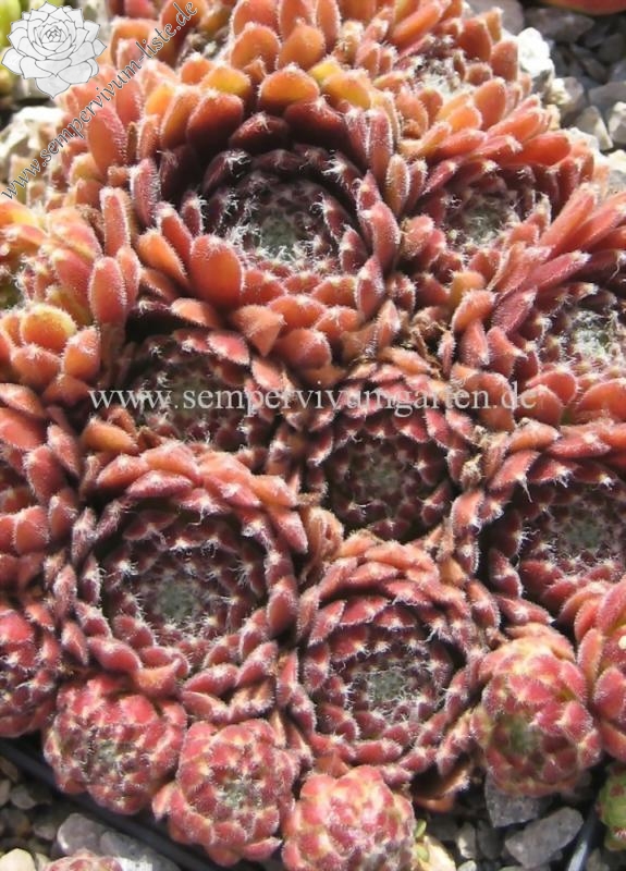 Ein rötlicher Typ, der dichte Polster bildet, aus vielen runden Rosetten. Ein passender Name!