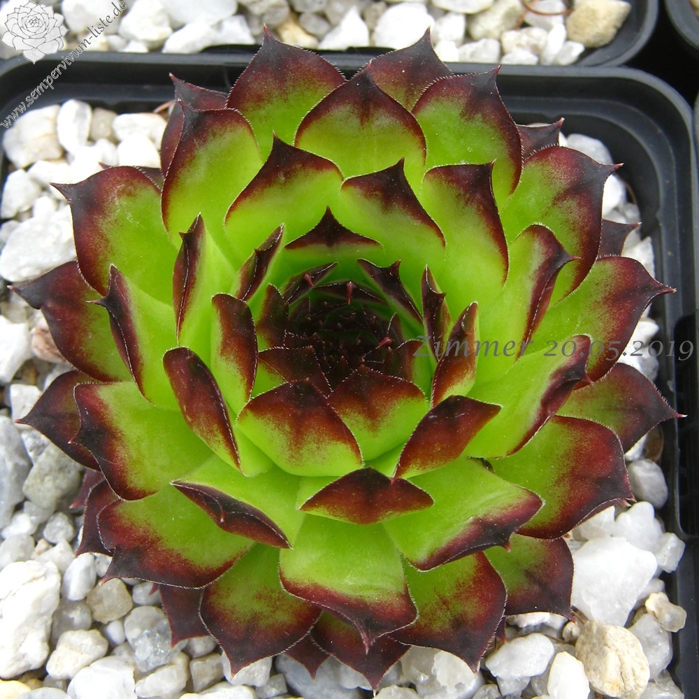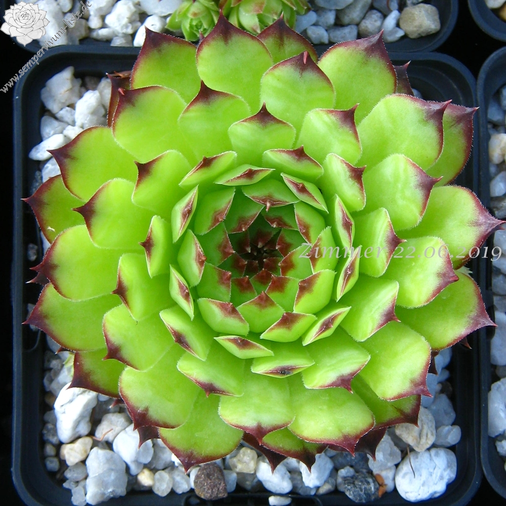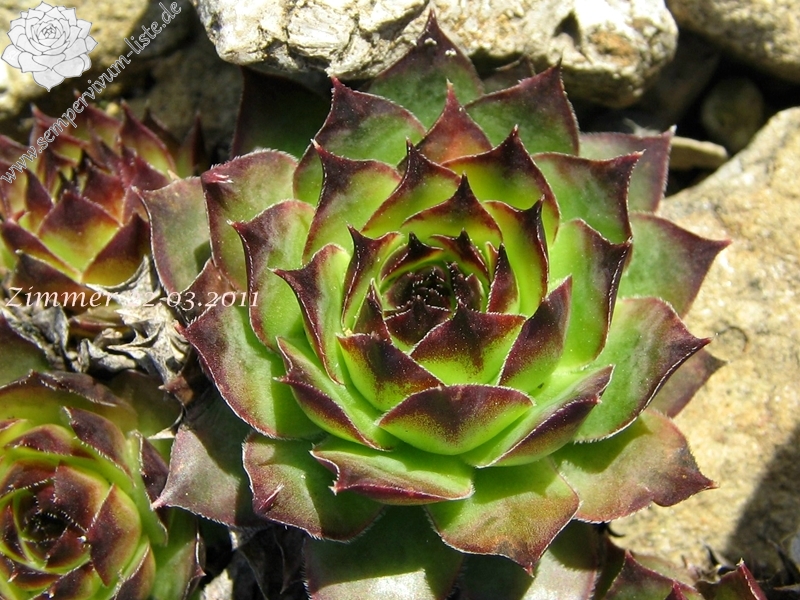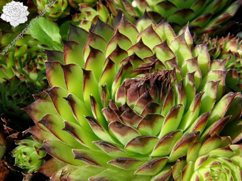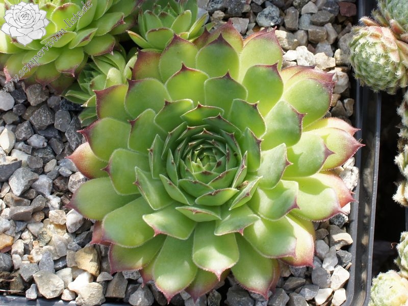 Eine größere Sorte, die perfekte Rosetten bildet. Auffallend sind die kräftig rot gefärbten Blattenden.