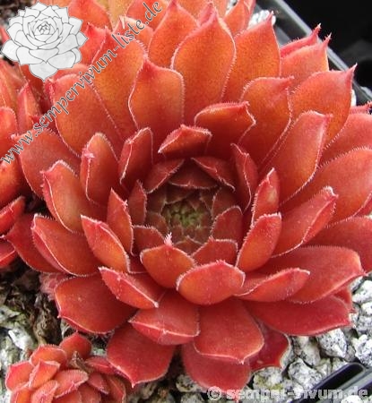 Die Sorte aus den Niederlanden prunkt während der lichtreichen Jahreszeit mit leuchten rot-orangen Rosetten von mittlerer Größe. Der Rand des Laubs ist silbrig bewimpert, wodurch 'Fire and Ice' etwas frostig wirkt: Blattsterne in Feuer und Eis!