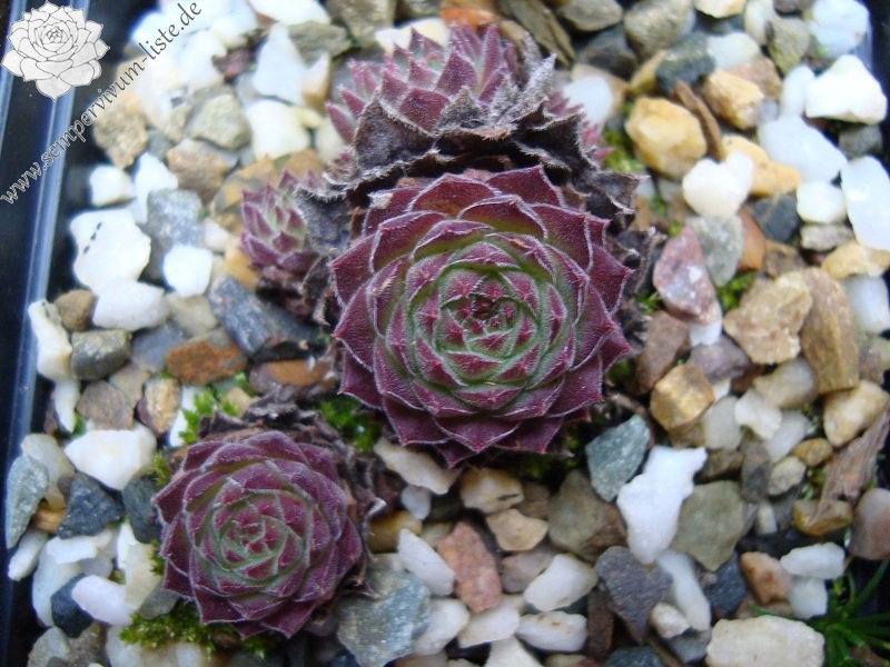 Eine ältere Kreuzung, die durch die samtigen Rosetten auffällt! Schön wirken auch die großen, dunklen Blattenden. Mittelgroße, wüchsige Pflanzen.