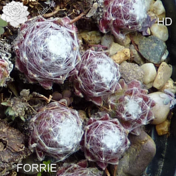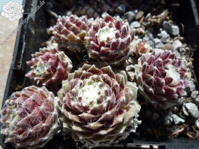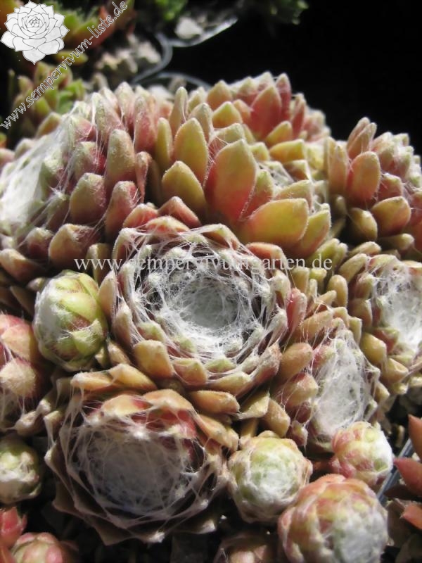 Mittelgroße Rosetten, die schön besponnene Polster bilden. Schöne rote Färbung. Super!