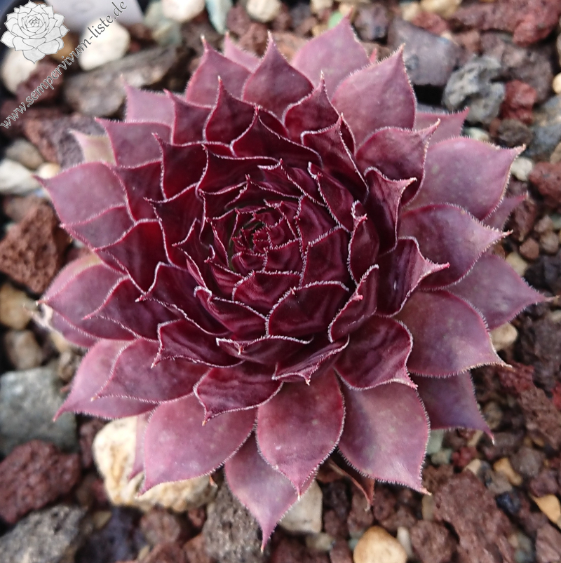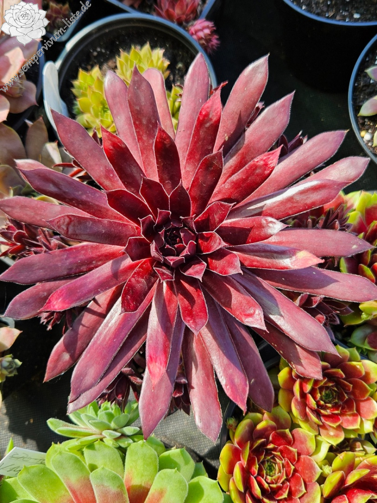 'Furia' sind große, 13 Zentimeter hohe Rosetten in dunklen Lila- und Braun-Burgundertönen, die auch bei extremer Hitze nicht aufhellen. Näher am Hochsommer kommen dunkle Purpurtöne hinzu. Furia sticht durch seine satte, leuchtende Farbe deutlich von anderen Semp-Sorten hervor.