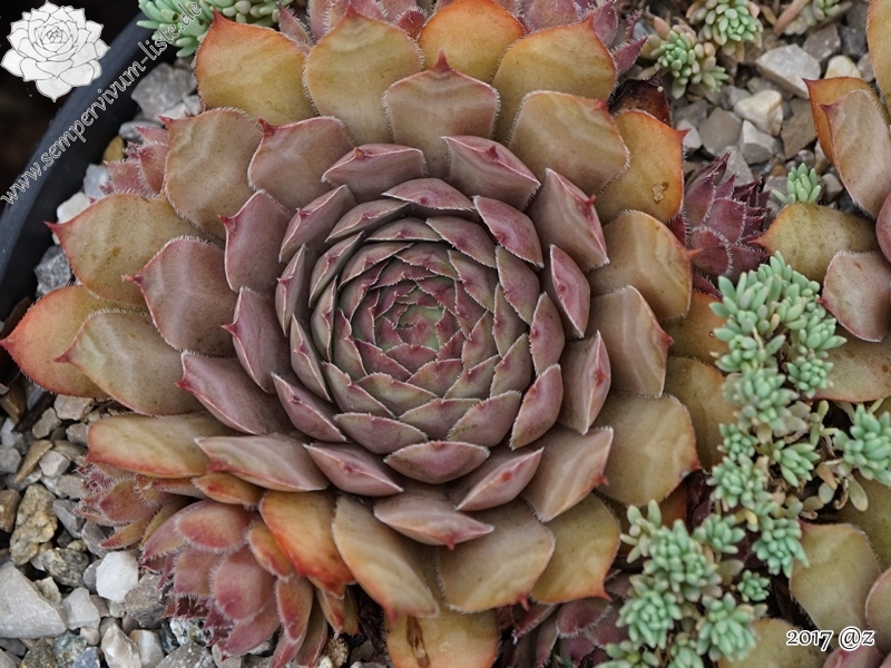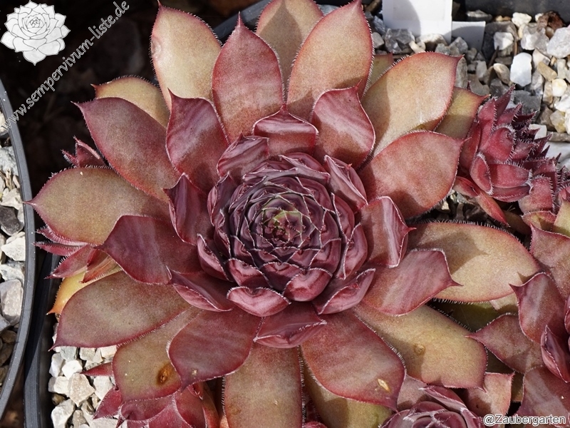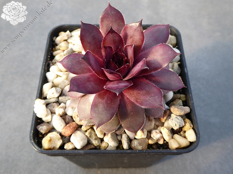Rosetten bis 4 cm, Blätter oval, lang bespitzt, signalrot - rubinrot