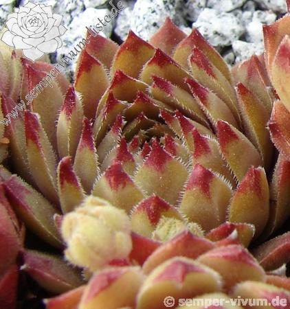 Sempervivum 'Gratiana' ist eine wüchsige Pflanze, die schnell dichte Polster bildet. Die Rosetten sind kugelig geformt und besitzen eine sehr bunte Wirkung.