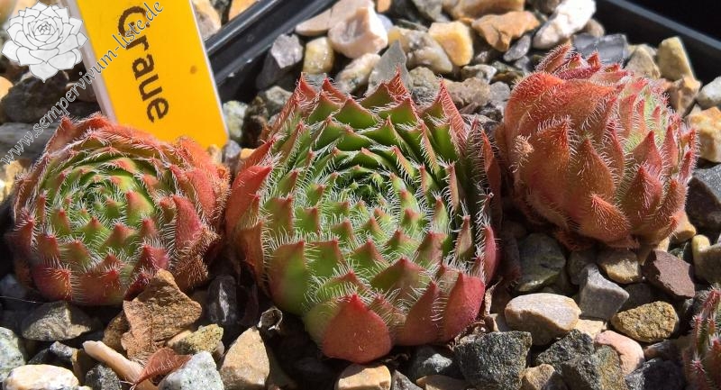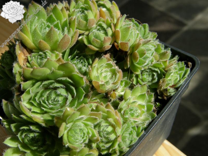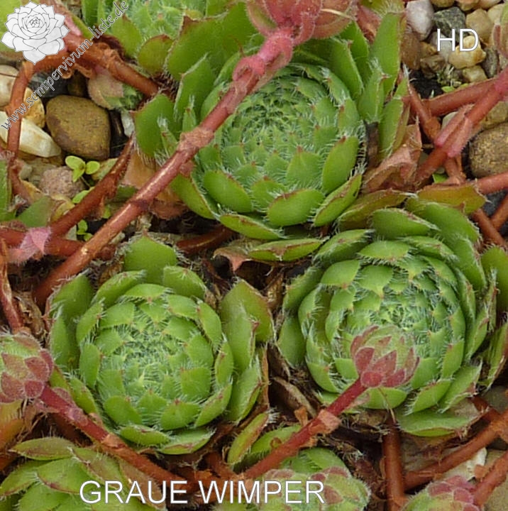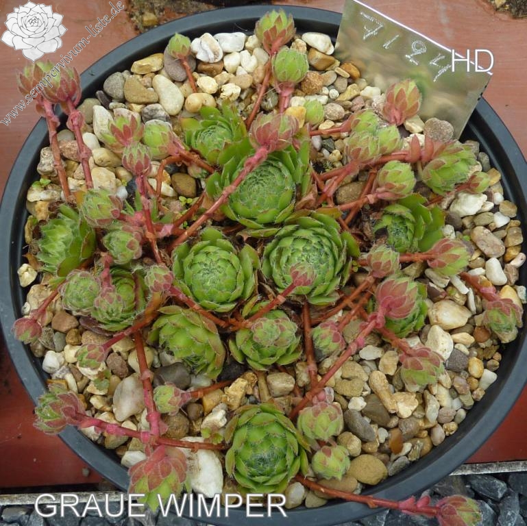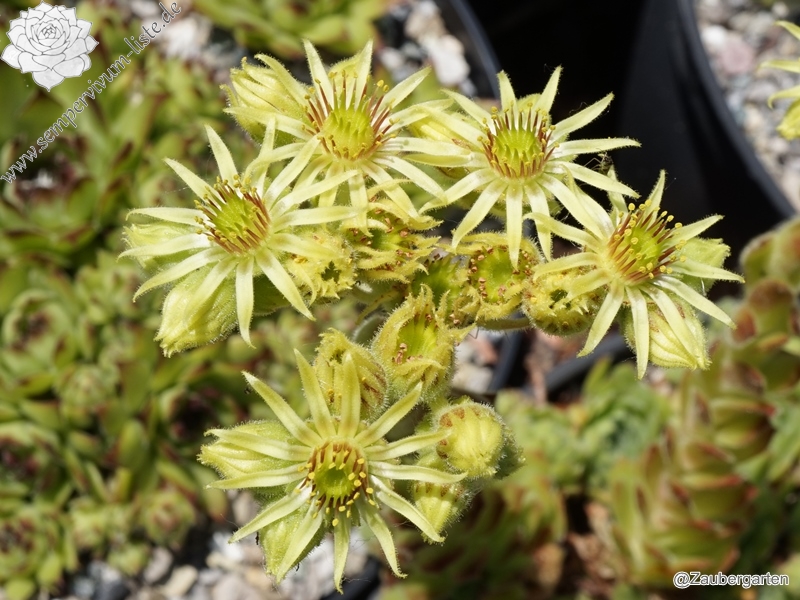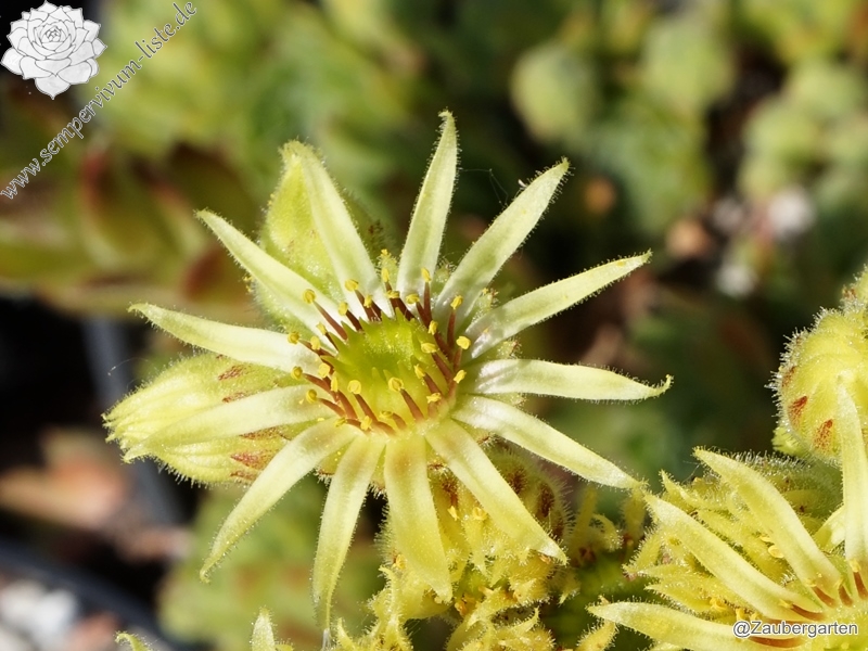 Eine neue Züchtung von dem bekannten Staudenzüchter Eugen Schleipfer. Die mittelgroßen Rosetten besitzen eine auffallend starke Bewimperung an den Blatträndern. Besonders schön sind auch die kräftig gelb gefärbten Blüten. Ein Elternteil soll Sempervivum wulfenii gewesen sein!