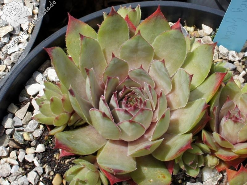 Eine großrosettige Sorte aus den 70er Jahren von David Ford: Wie der Name schon sagt, wechseln die Rosetten ihre Farben in unterschiedlichen Grau- und Grüntönen.