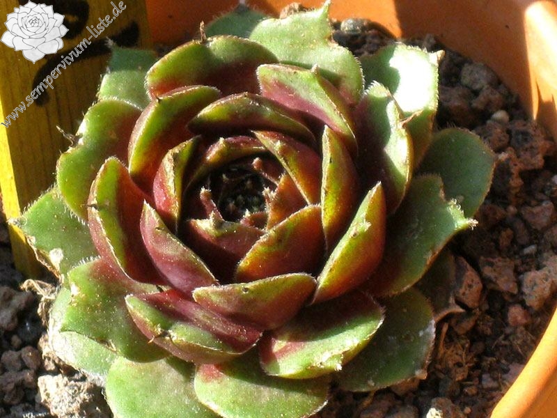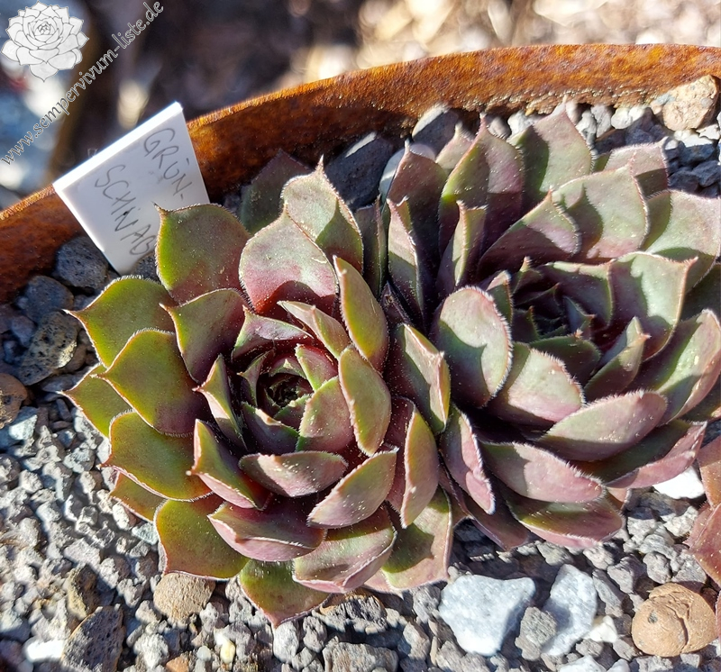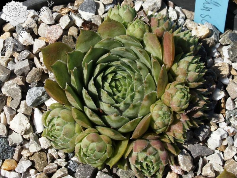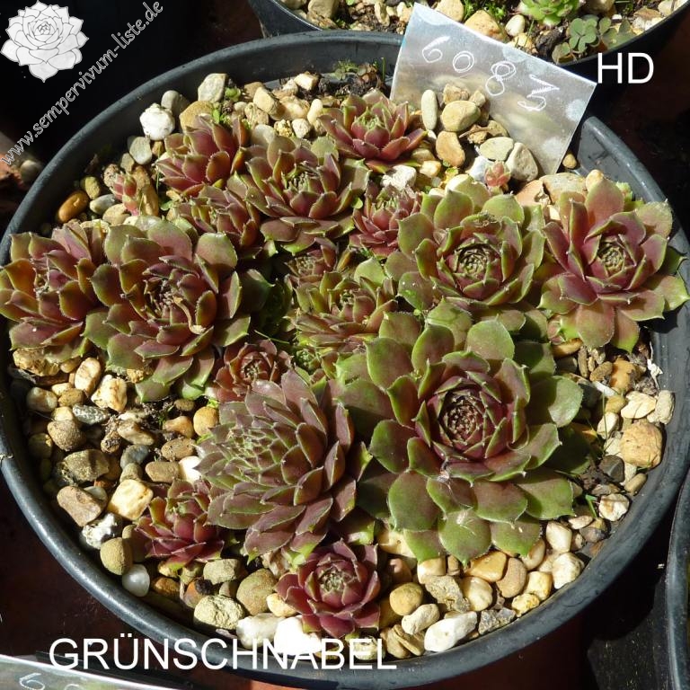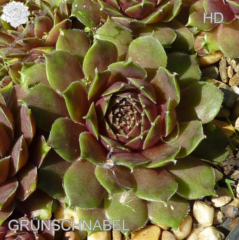 Eine ältere deutsche Sorte mit mittelgroßen Rosetten. Im Frühling sind die grünen Rosetten an der Basis 2/3 dunkelrot gefärbt und besitzen somit einen "grünen Schnabel".