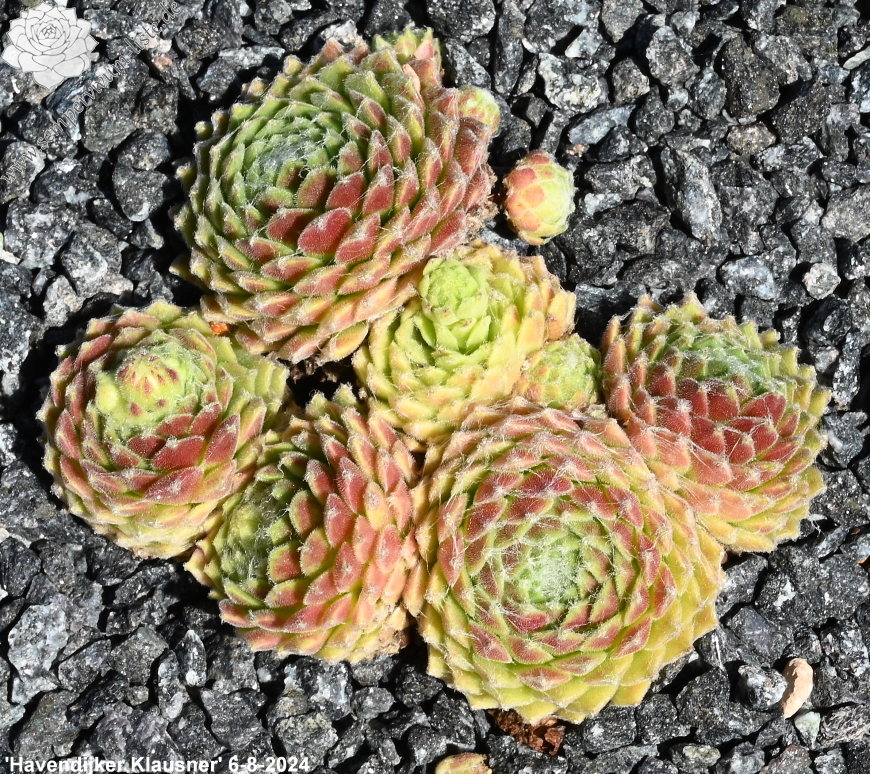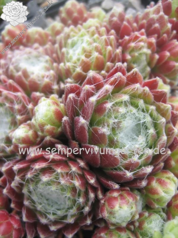 Ein schöner Spinnweb-Hauswurz. Die leichte, weiße Behaarung passt sehr gut zu den farbigen Rosetten. Die Pflanze ist gut wüchsig. Hat mir 2009 sehr gefallen!