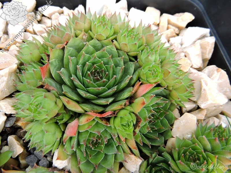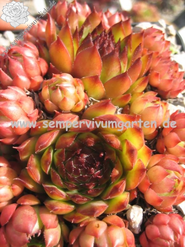 Ein schöner Hauswurz, welcher besonders in den Sommermonaten durch die leuchtende Färbung auffällt. Die mittelgroßen, knospenförmigen Rosetten sprossen willig.