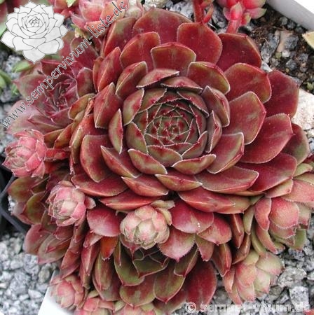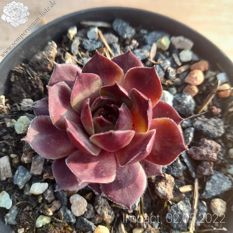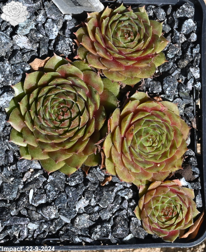 Eine schöne Sorte mit kupferfarbenen Rosetten, die im Frühling karminrot leuchten. 'Impact' bildet kompakte Tuffs, recht selten in Kultur!