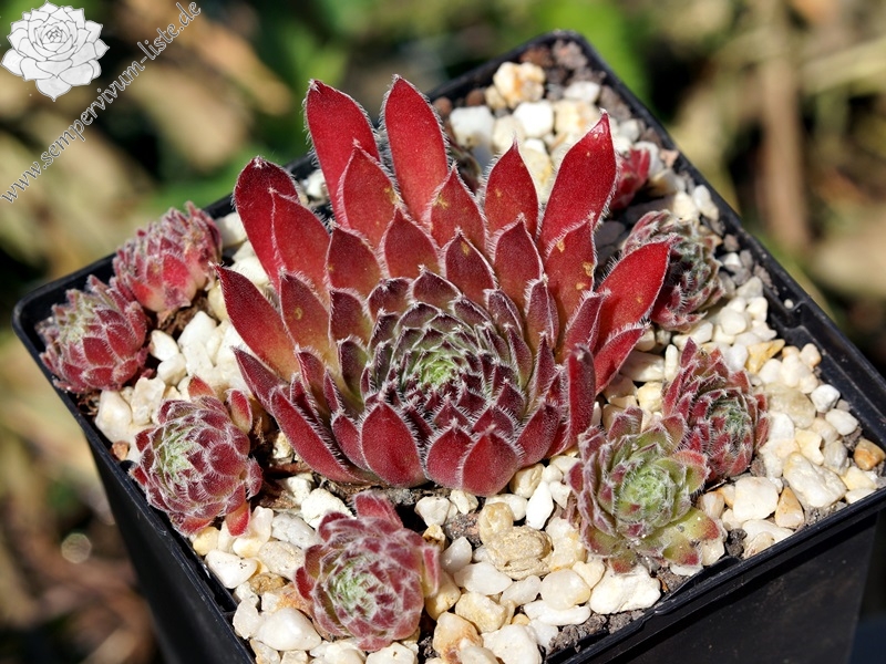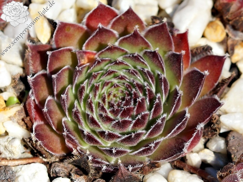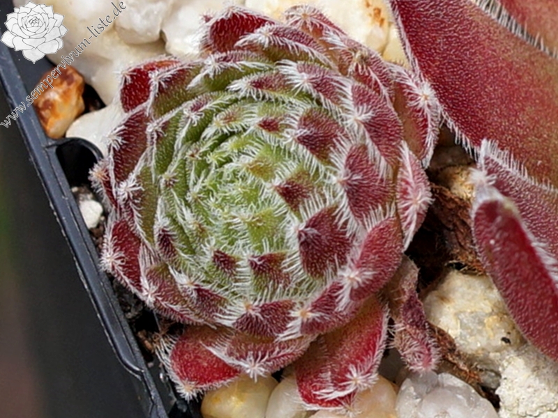 'Indian Spirit' ist ein Sämling aus einer Samenmischung von Arachnoideumsorten. Alle Sämlinge waren von Anfang an ungeschützt der Witterung des eiskalten Frühjahrs 2012 ausgesetzt, nur ein Teil hat überlebt. Bei 'Indian Spirit' ist deutlich das Arachnoideumblut zu erkennen, die kugeligen Kindel wirken sehr stachelig. Die langen weinroten Blätter sind leicht flaumig und weiß bewimpert, die Blattspitzen tragen kleine weiße Wunderkerzen. Die Blattbasis und das Rosettenzentrum leuchten grünlich, die Rosetten werden ca. 8 cm groß. Die langen äußeren Blätter sind leicht nach oben gebogen und erinnern an den Kopfschmuck der Indianerhäuptlinge. Die Grundfarbe der Blütenblätter ist lila und auf der Mittellinie grün-rot gestrichelt. Die roten Staubfäden umschließen die grüne Mitte der Blüte. Zum Ende des Sommers verliert sie langsam die längsten äußeren Blätter und wird kompakter. 'Indian Spirit' ist nicht empfindlich, sie steckt sogar den vielen Regen gut weg und sie vermehrt sich gut.