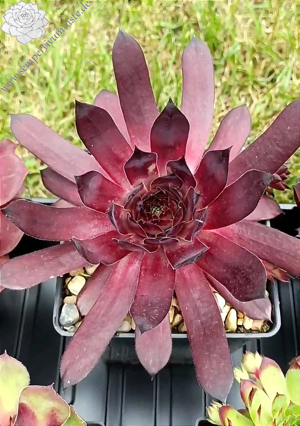 Große schwarze und rote Rosetten mit länglichen Blättern. Im Frühling und Frühsommer sind die Blätter an der Basis hell und sehen aus wie nachgewachsene Wurzeln gefärbter Haare. )) Behält den ganzen Sommer über eine dunkle Farbe.