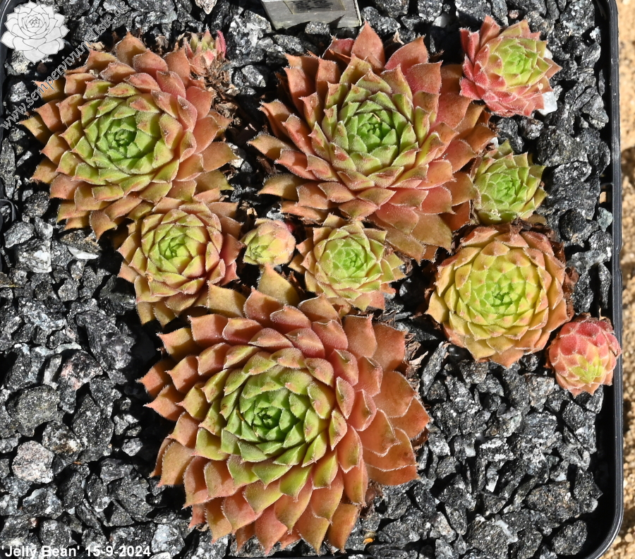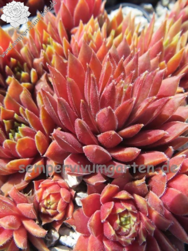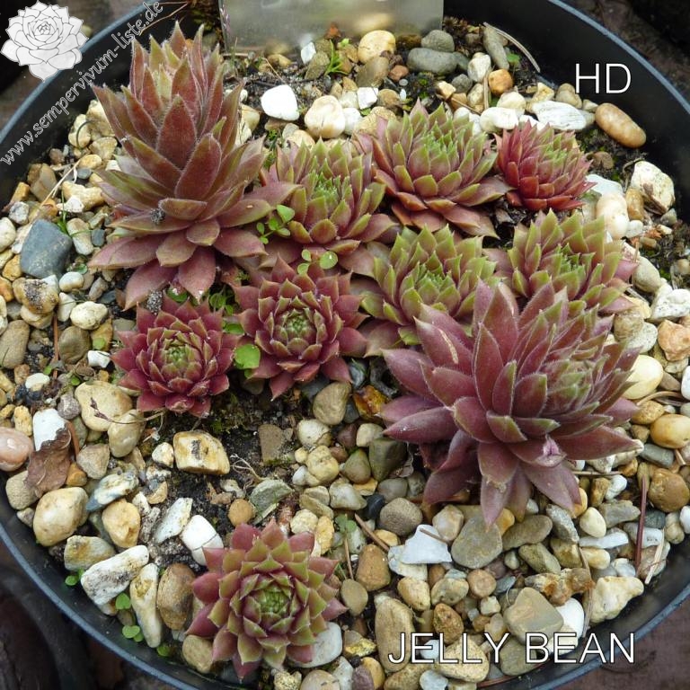 Sempervivum 'Jelly Bean' ist ein mittelgroßer Hauswurz. Die Rosetten sind sehr wüchsig und bilden ganz dichte Polster. Besonders die Sommerfärbung gefällt mir sehr gut.