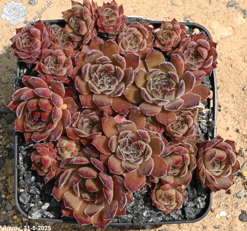 Sempervivum cv. Jimmy ist eine kleinere Hauswurz-Züchtung, die sich sehr gut präsentiert. Die spitzen Blätter stehen fast senkrecht und zeigen kleine rote Spitzen. Sie hat mir dieses Jahr besonders gut gefallen.