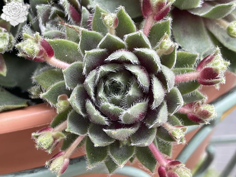 Der wüchsige Schwarzwald Sämling mit seinen 3 cm großen Rosetten besteht aus leicht samtenen Blättern mit weißen Randwimpern. Das anmutige Farbspiel von intensiven Pastelltönen wirkt im Frühjahr durch das helle frische Grün mit dem Rose und dem weißen Samtüberzug der Blätter sehr ansprechend. Im Gegensatz zum aktuellen Trend von großen Rosetten und kräftig leuchtenden Farben, ist 'Katalin' mit ihrer harmonisch ausgewogenen Verfärbung eher etwas für zarte Romantiker. Nicht ohne Grund zählt der Züchter diese neue Sorte zu seinen Lieblingen. Sie erinnert an die bereits prämierte amerikanische Sorte 'Lavender and Old Lace', bei der der kräftige Lavendelfarbton dominiert, jedoch der weiße Samtüberzug gänzlich fehlt.