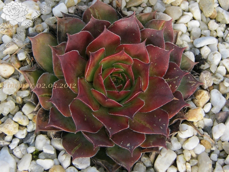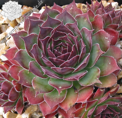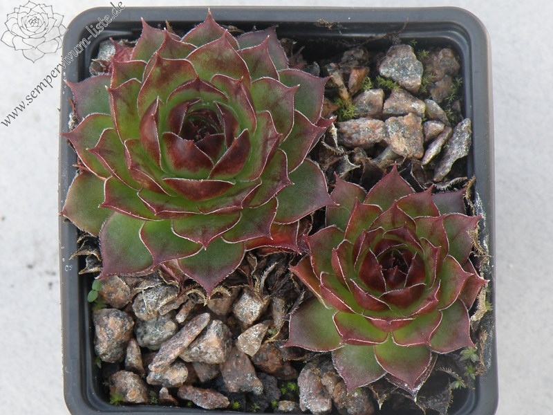 Ros. 5 cm, rosa-blaugrün, braune Spitzen, viele Ausläufer