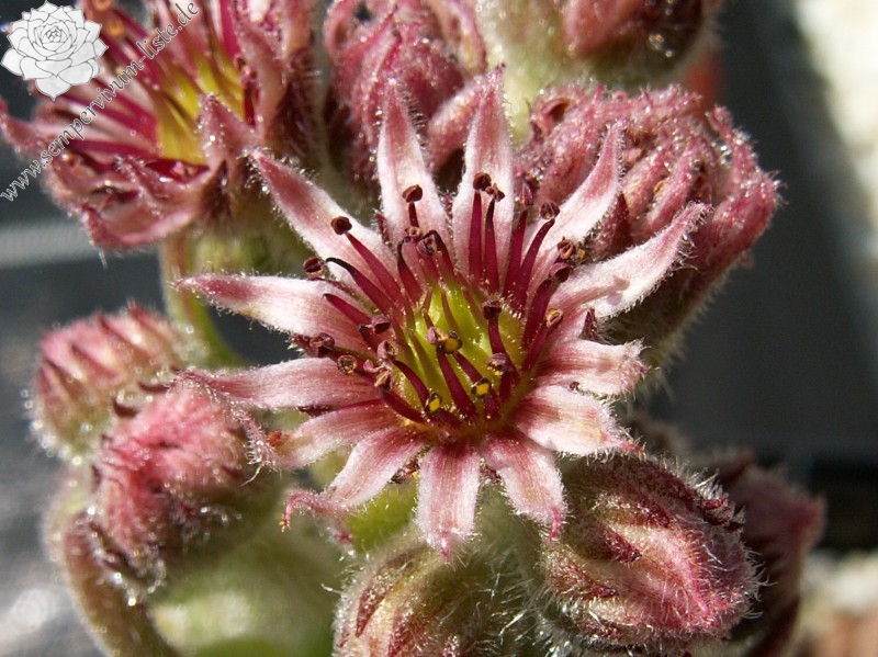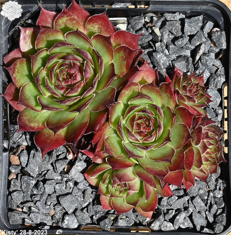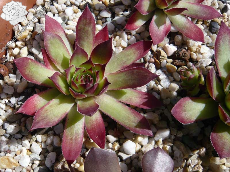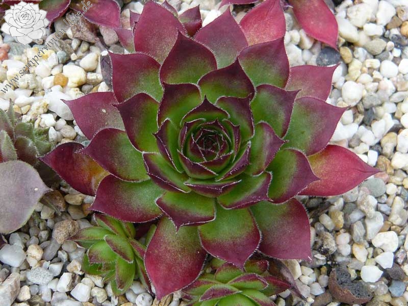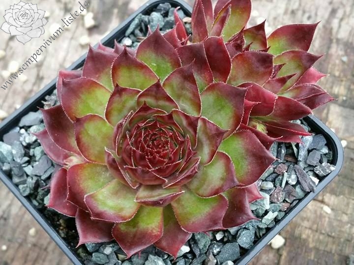 Eine ungewöhnliche Färbung: himbeerrot mit grauem Zentrum. Die Blätter sind scharf gespitzt.