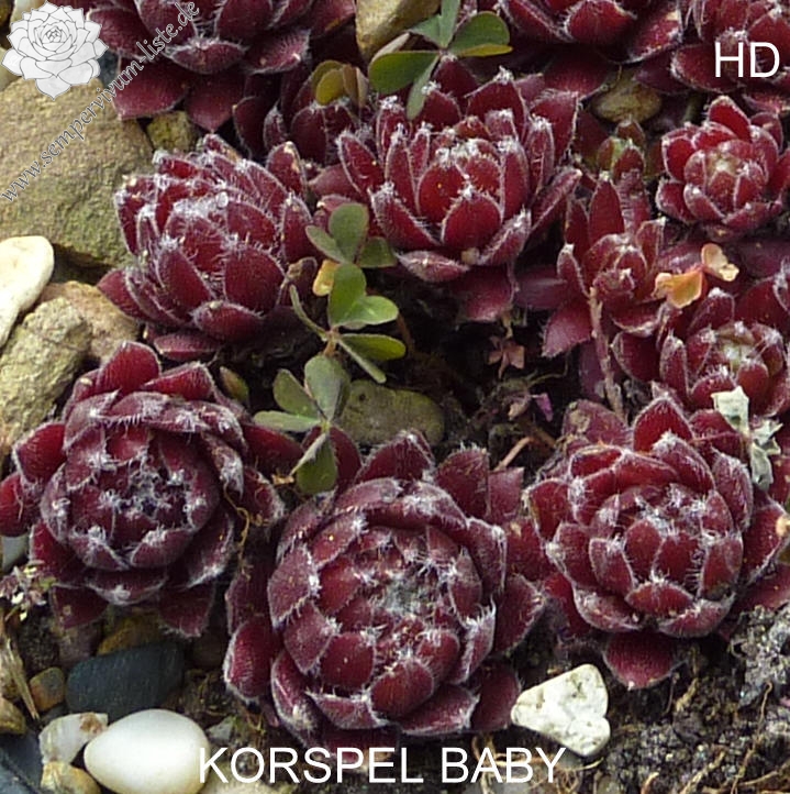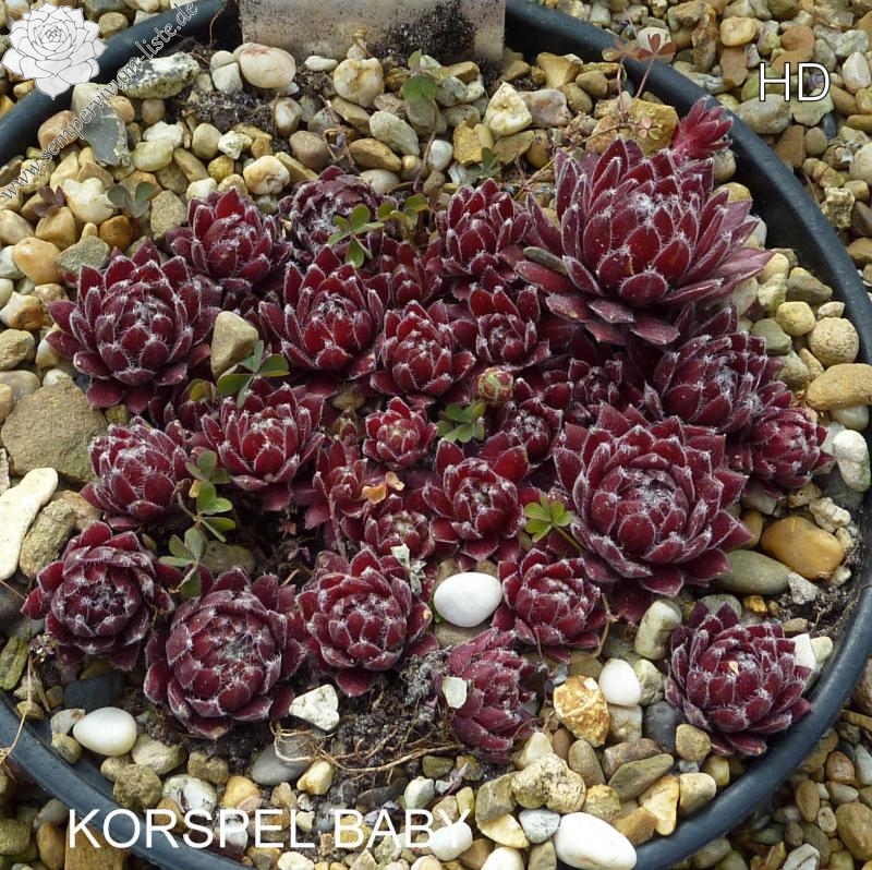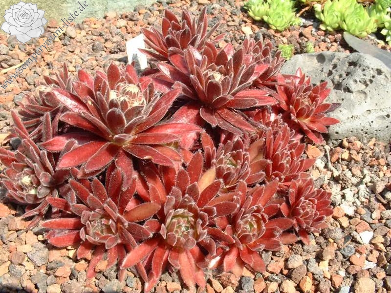 Rosetten bis5 cm, Blätter oval, kurz bespitzt, weinrot, später heller, stark bewimpert