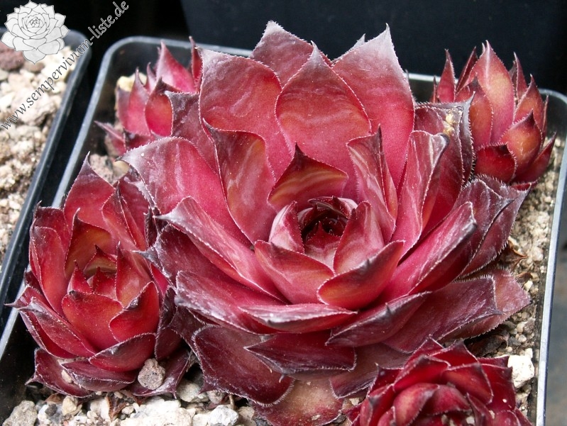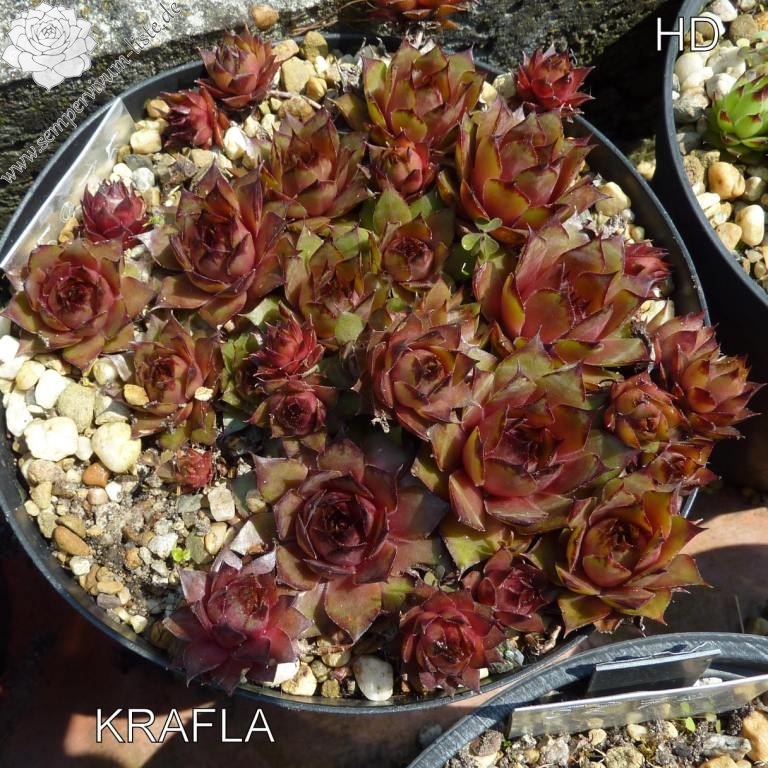 Ein Riese der 80er Jahre. Der Durchmesser der eher wenigblättrigen Rosetten erreicht 12 bis 15 Zentimeter! Spannend ist auch die Blattfärbung von oliv-graugrün, ocker-orange bis rosa-purpur. Größe und Färbung je nach Standort und Düngung. Benannt wurde diese Hauswurz nach einem Vulkan in Island.