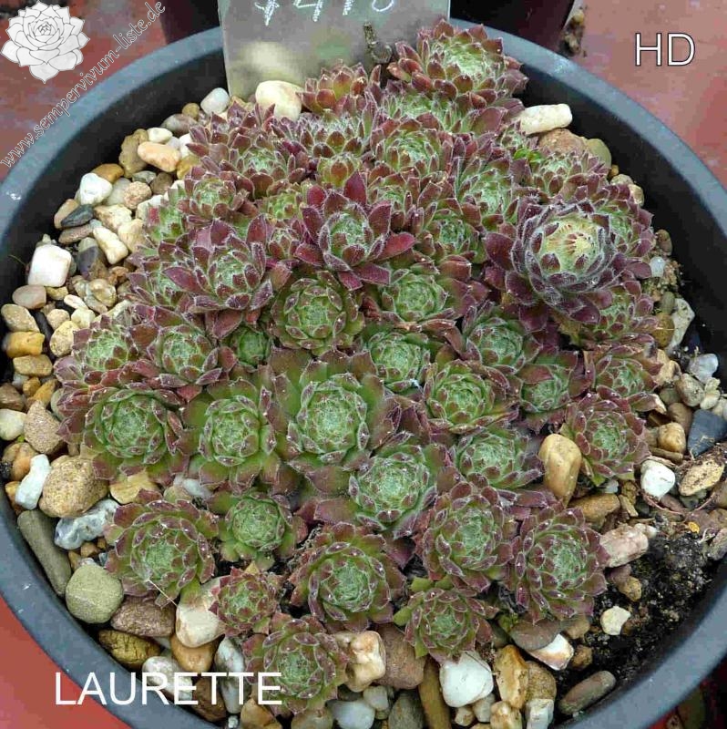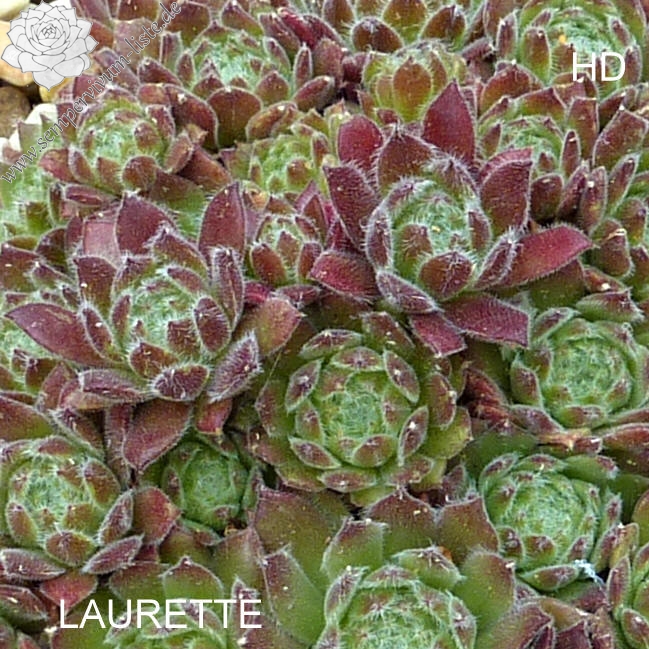 geschlossene Rosetten bis 4 cm, Blätter oval, kurz bespitzt, graugrün, Außenseiten und Spitzen rotbraun