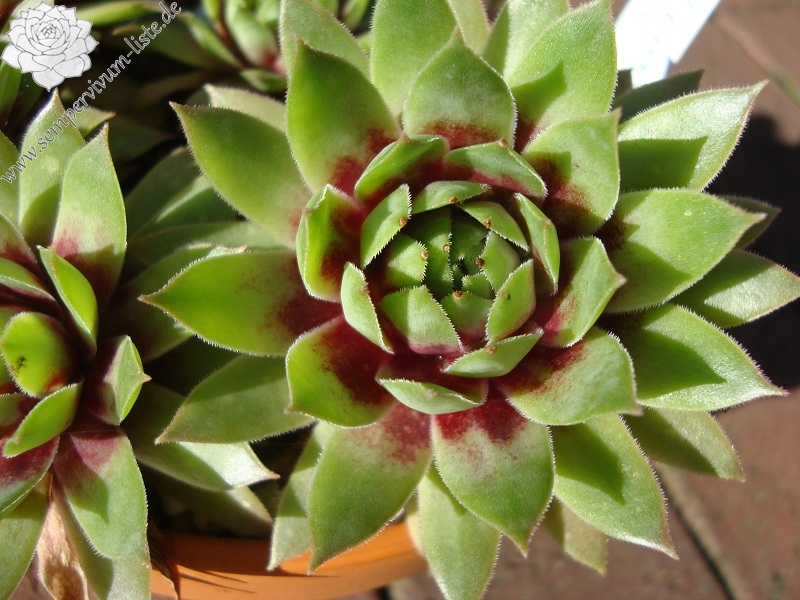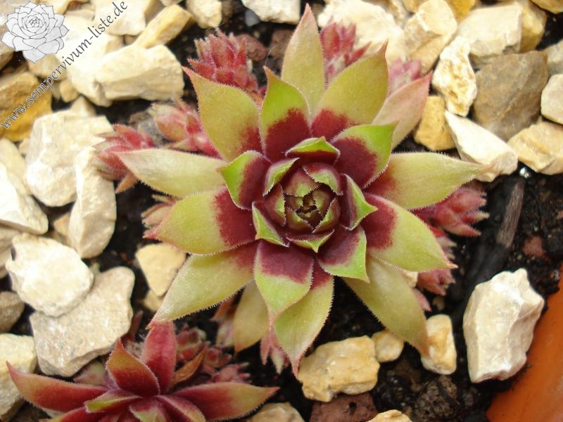 Eine neue Züchtung, die im Sommer sehr große, helle Blattenden zeigt. Die Rosetten erreichen einen Durchmesser von 10cm und sprossen willig. Sie bildet lockere Polster. Ich habe mir von dieser Kreuzung eigentlich mehr erwartet – vielleicht unter anderen Kulturbedingungen!