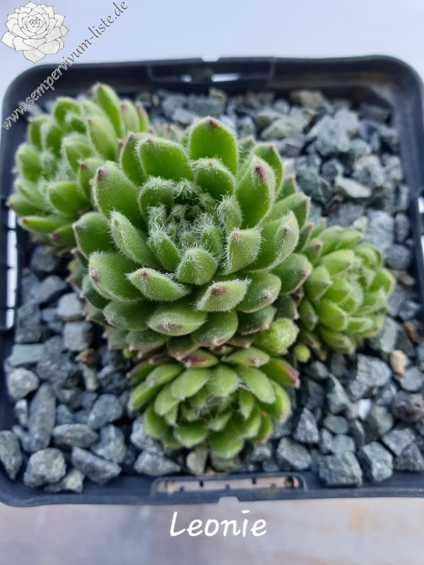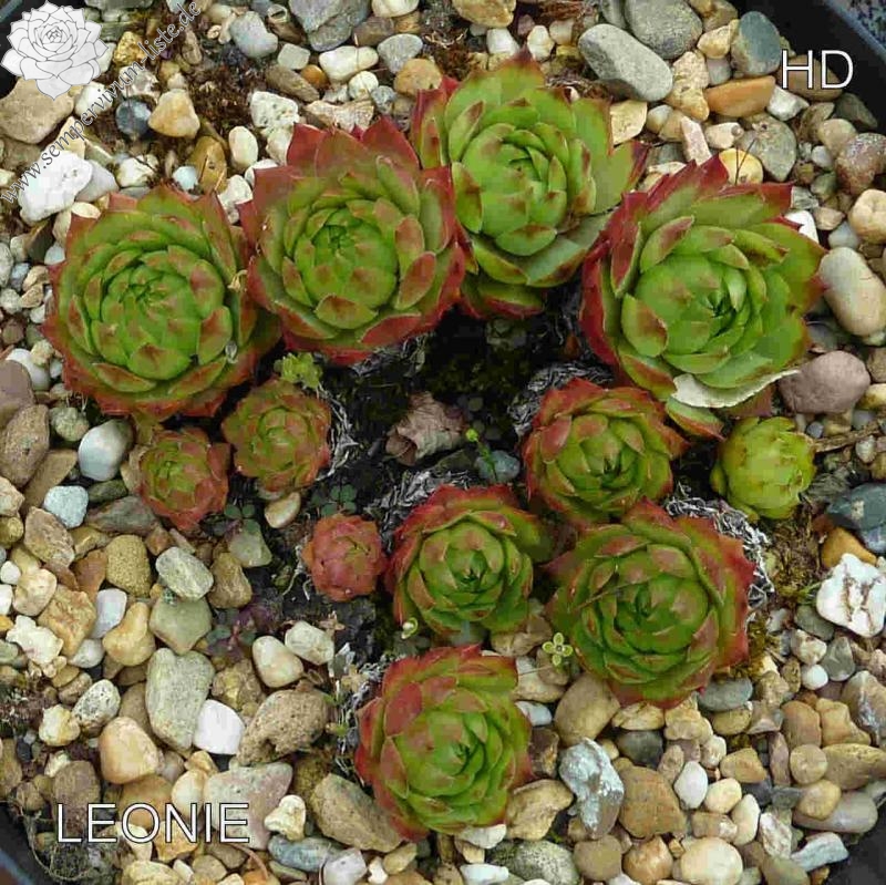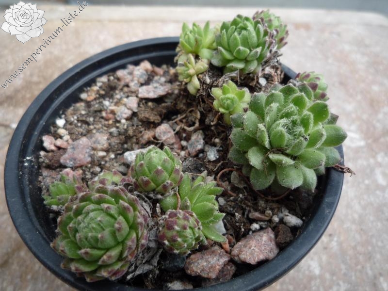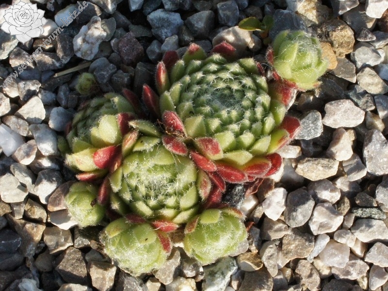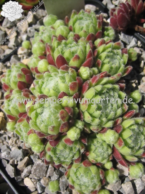 Hier haben wir einen kleineren Vertreter. Die grüne Grundfarbe passt gut zu den roten Blattenden. Im Zentrum sind die Rosetten leicht besponnen. Sehr wüchsig. Gefällt mir sehr gut!