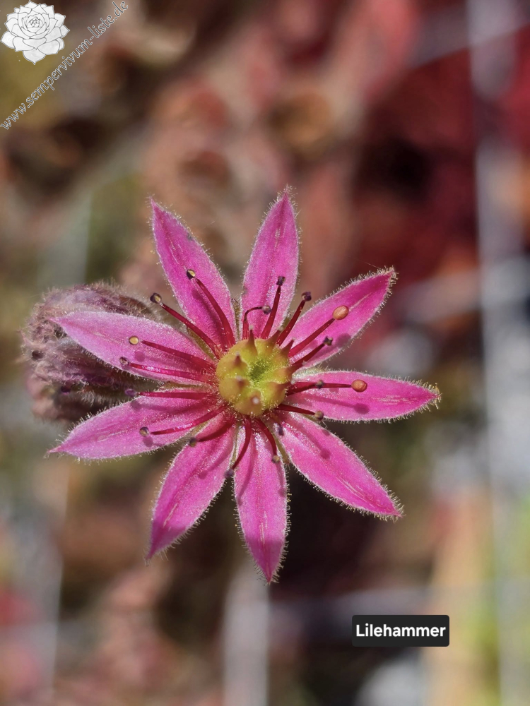 Eine neue Hybride von Andre Smits aus Belgien. Die Sorte formt kompakte Polster mit wolligen, kleineren bis mittelgroßen Rosetten. Im Frühjahr in leuchtend himbeerroter Farbe mit grünem Zentrum. Zudem schöne, sternförmige Blüten in Rosarot.