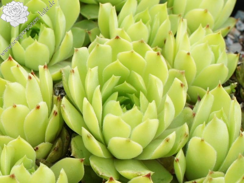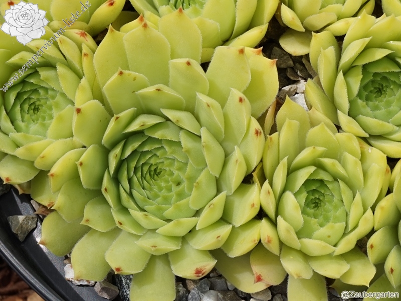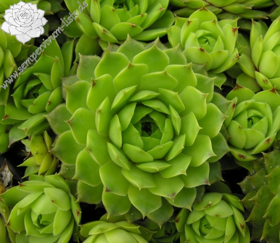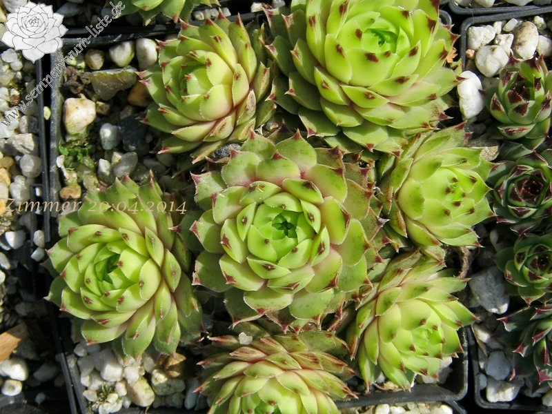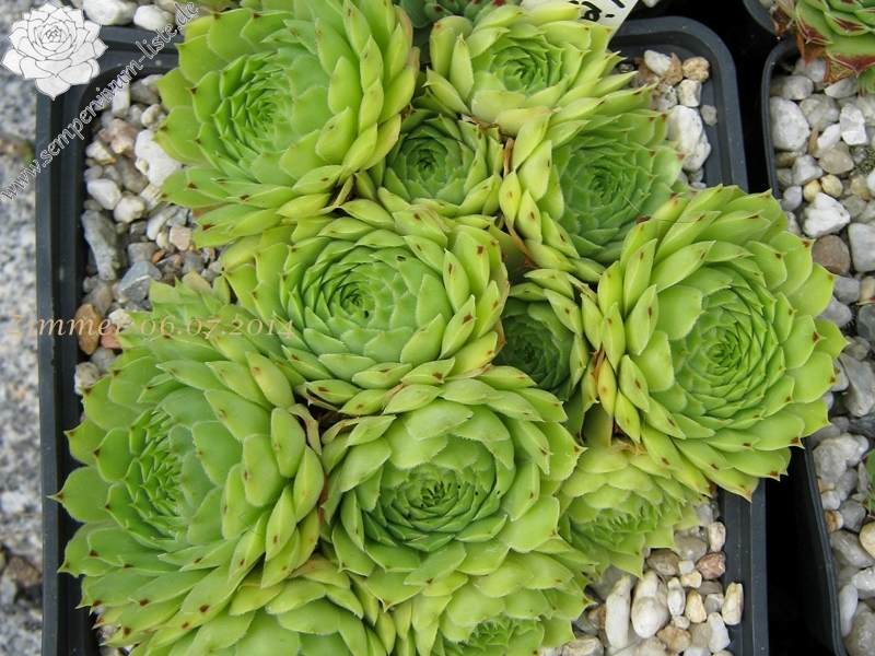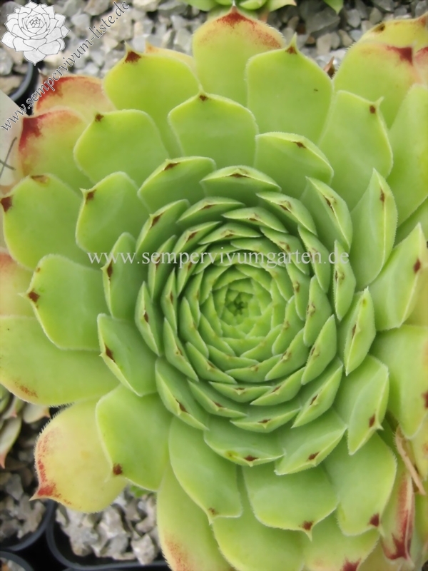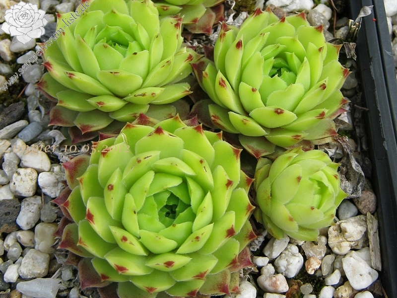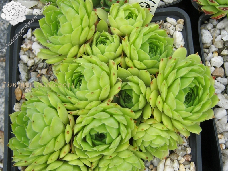 ein selektierter Clon in Frankreich / 4 - 5 cm große Rosetten, ganz hell grün, äußere Spitzen rötlich